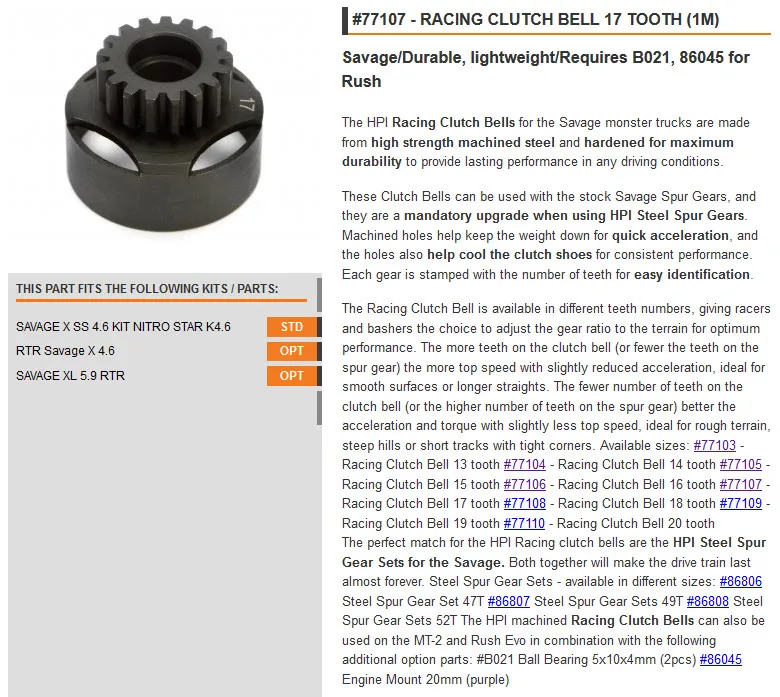 1 шт. Харден Стальной 13T 14T 17T гоночный клатч колокольчик 77103 77104 77107 для радиоуправляемого автомобиля 18 HPI нитро двигатель Savage X SS 4,6X4,6 XL5.9