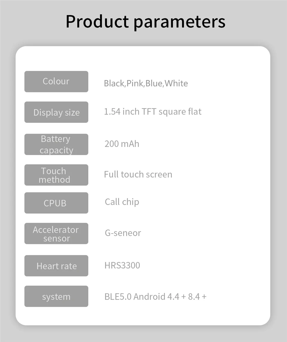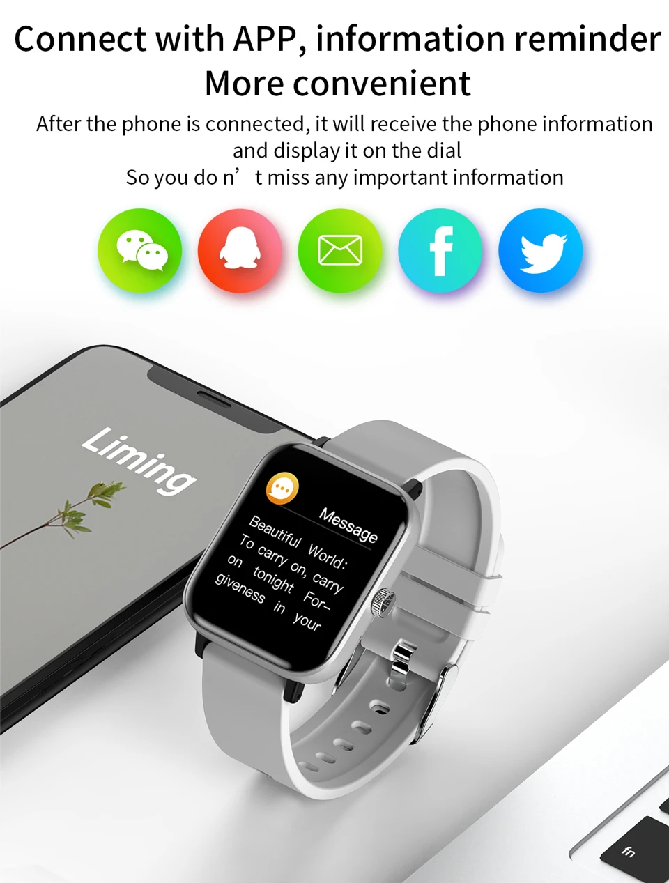 P8-это наше последнее поколение и самые выгодные Смарт-часы. В этой новой версии умные часы P8 имеют новый 1,54 "цветной дисплей и полный емкостный сенсорный экран, поддерживающий краны и плавники, поэтому они легко читаются и работают. Мягкий силиконовый ремешок делает P8 легким и удобным для ношения на запястье и доступен в 4 красивых цветах. Оставайтесь здоровыми > Спорт: отслеживание активности в течение всего дня, водонепроницаемость IP67, 7 режимов упражнений, секундомер, отчет о спортивных данных. > Здоровье: 24/7 пульс, артериальное давление, кислород в крови, отслеживание сна и этапы, напоминания о перемещении. > Срок службы: Уведомления смартфона, будильник, погода, затвор, управление музыкой, более 250 циферблатов (поддержка пользовательских циферблатов). Благодаря ресурсу аккумулятора до 7 дней вдохновляйтесь днем и ночью. Язык Push-информация: Поддержка всех языков Языки умных часов: английский, русский, испанский, португальский, немецкий, французский, китайский, голландский, турецкий, малазийский, польский, чешский, словацкий Язык приложения: поддерживает английский, упрощенный китайский, традиционный китайский, голландский, русский, французский, немецкий, португальский, испанский, турецкий, японский, польский, арабский, Малайзийский, тайский, чешский, словацкий