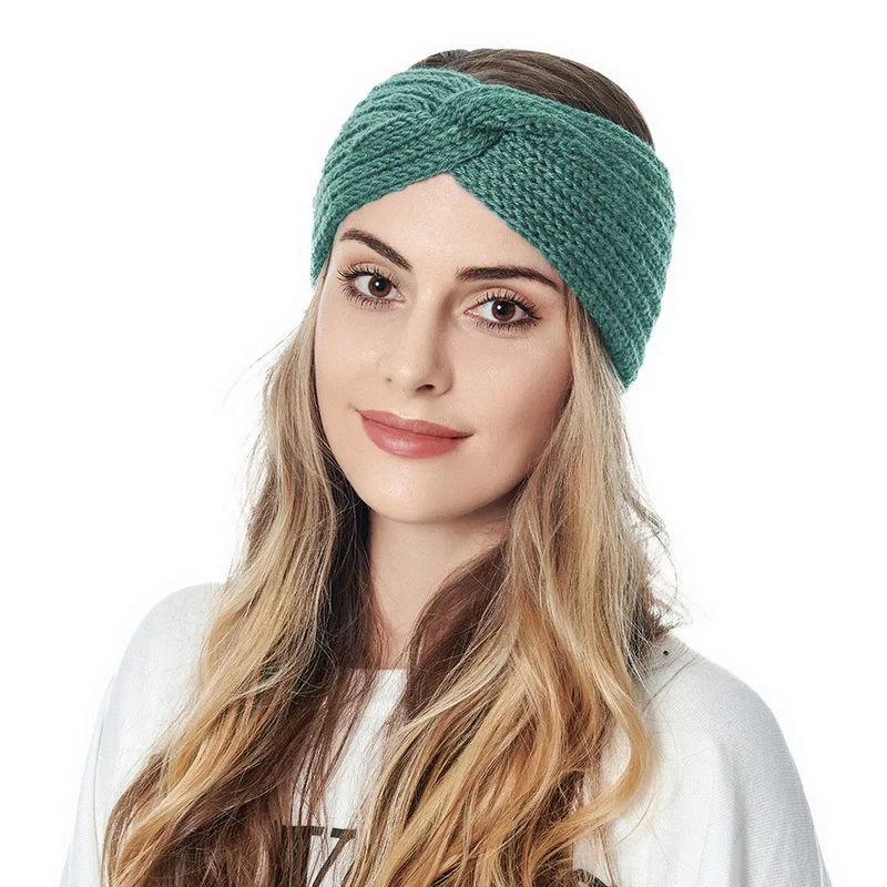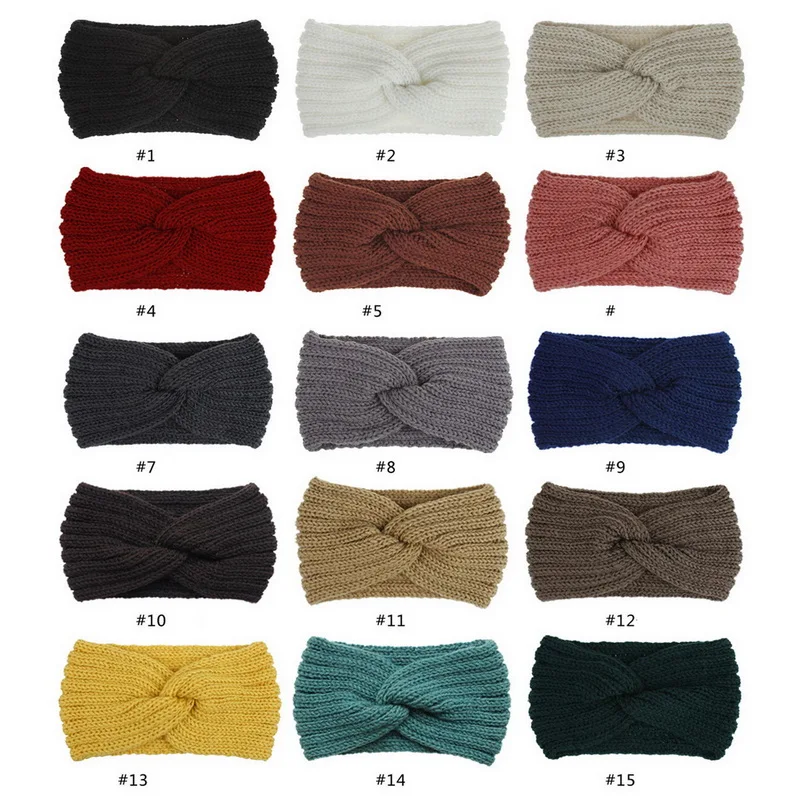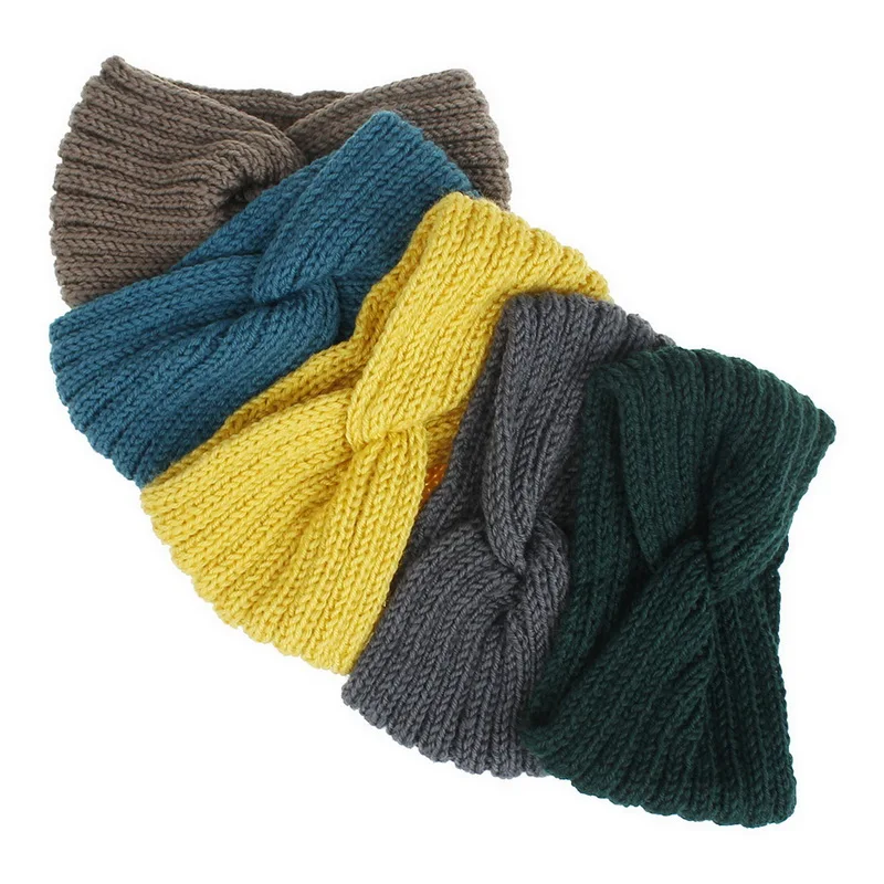 Женская вязаная повязка на голову, однотонная эластичная повязка на голову с узлом, аксессуар для волос на осень и зиму, 2021