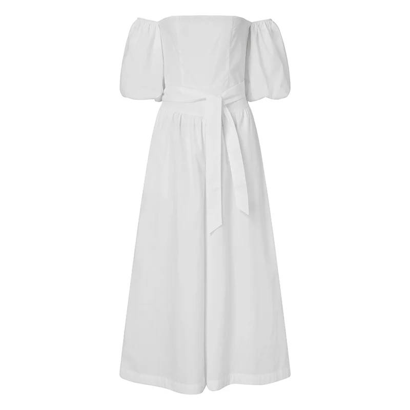 Женский комбинезон с рукавами-фонариками, с открытыми плечами и поясом, лето 2021