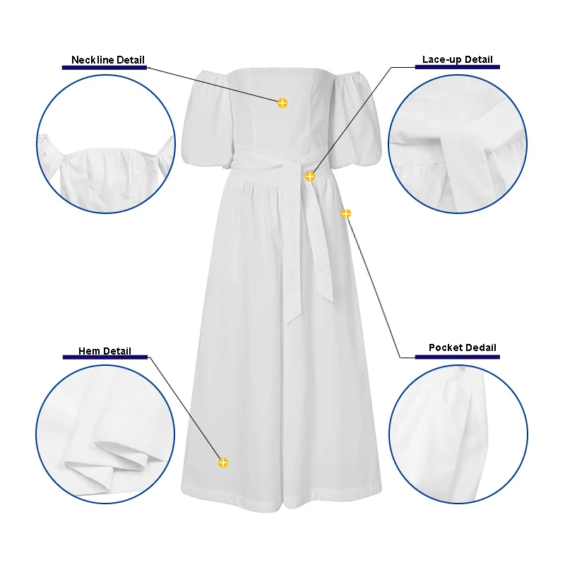 Посылка входит: 1 комплектМатериал: 95% полиэстер + 5% спандексЦвета: черный, белыйРазмер: S,M,L,XL,2XL,Длина рукава: полный рукавВырез: одно слово-ШеяУзор: однотонныйДлина: до щиколоткиТолщина: тонкаяУкрашение: боковые карманы, шнуровкаОсобенности: комбинезонСтиль: Досуг, богемный, ретро, ЕвропаСезон: весна, летоПрименение: семья, праздник, работа, путешествияВнимание:1. Реальный товар может немного отличаться по цвету по сравнению с изображениями на разных мониторах компьютеров. Будьте осторожны при обращении, спасибо.2. Возможна погрешность в 1-3 см из-за ручного измерения. Приносим извинения за неудобства.3. Пожалуйста, ориентируйтесь на реальный товар, изображения модели только для справки.4. Внимание! Пожалуйста, внимательно проверьте таблицу размеров перед размещением заказа.