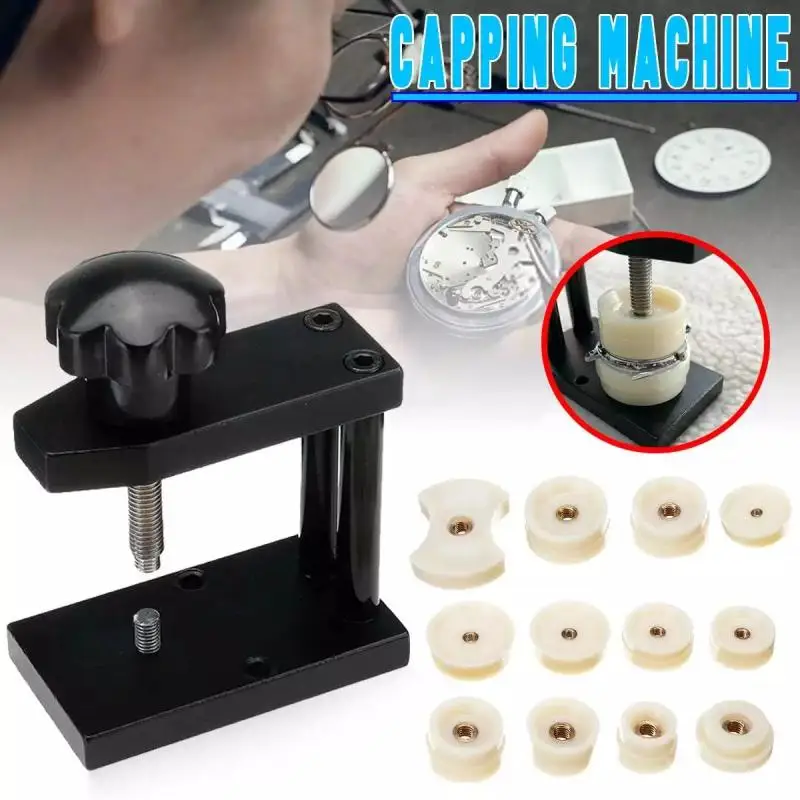 Задней крышки часов прессовочная машина инструмент для ремонта часов представляет наиболее продаваемые наборы винтовых укупорочная машина черный укупорочная машина 12 под давлением ремонт часов набор инструментов