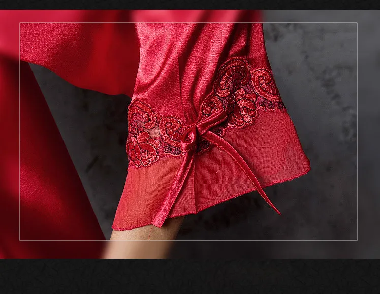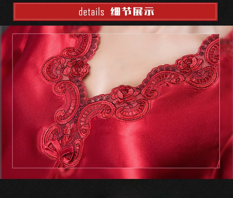 Пикантная кружевная Шелковая пижама из ледяного шелка, Женская Летн...