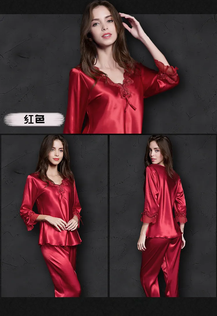 Шелковые пижамы для женщин, одежда для сна, розовый женский комплек...