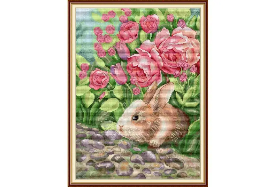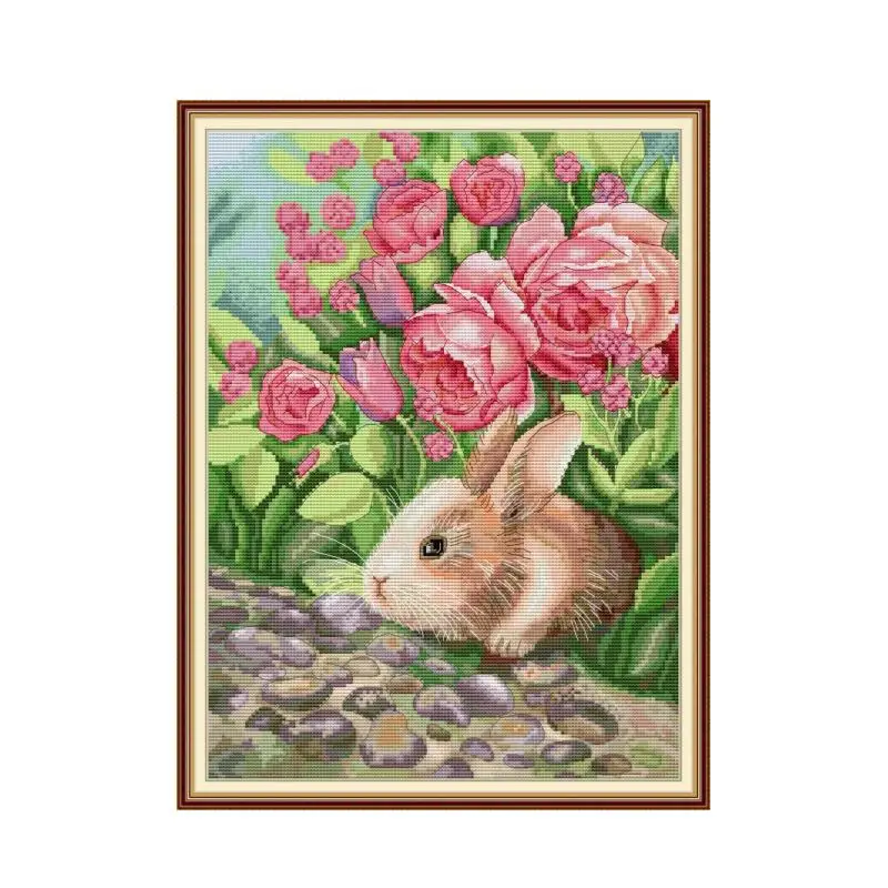 Кролика и цветочные узоры для вышивания 11CT 14CT "сделай сам" наборы для вышивки крестом китайский крестик Наборы вышивка, рукоделие, поделки