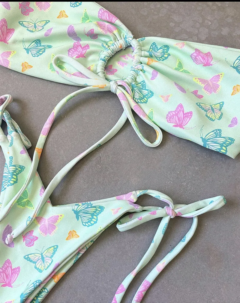 Платье с принтом бабочки бикини 2021 без бретелек сексуальные микро Бикин Набор Для женщин купальники галстук вверх пуш-ап мягкий микро ванный комплект
