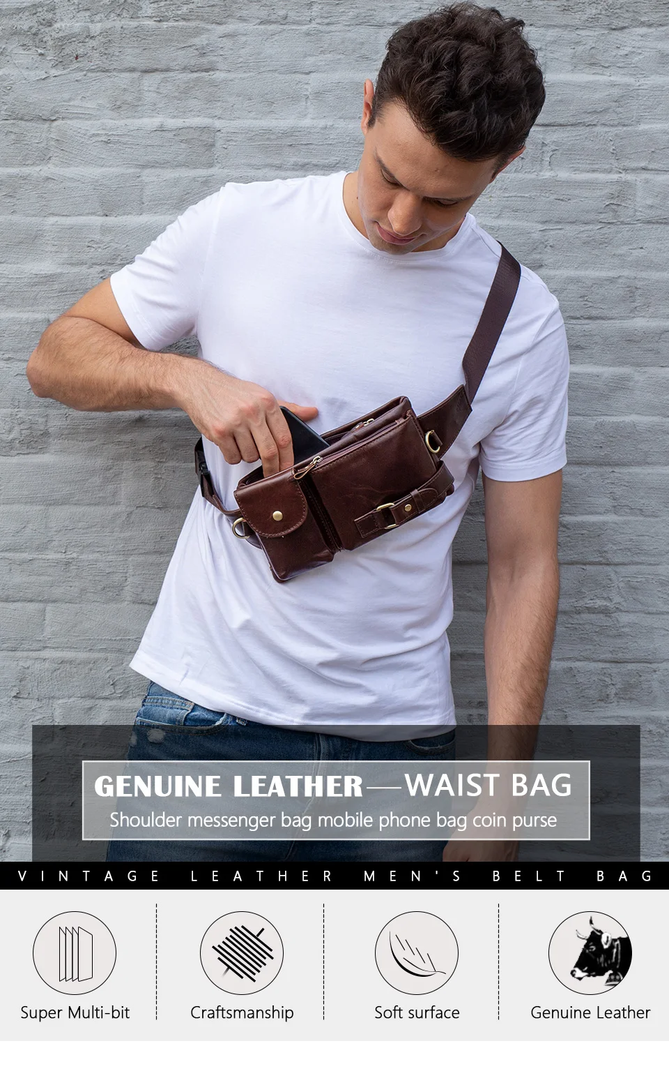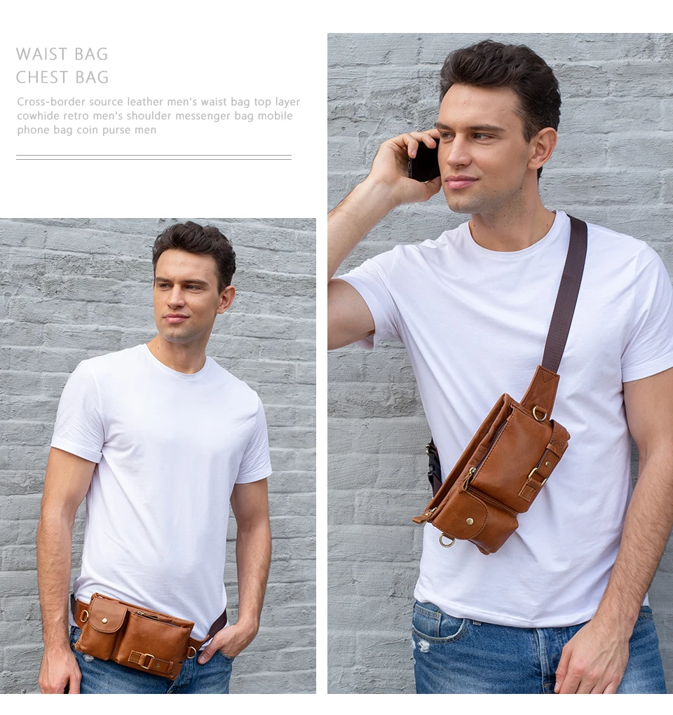 Кожаный поясной кошелек для мужчин, забавная дорожная нагрудная Сумочка для телефона, мессенджер на бедро, 2021