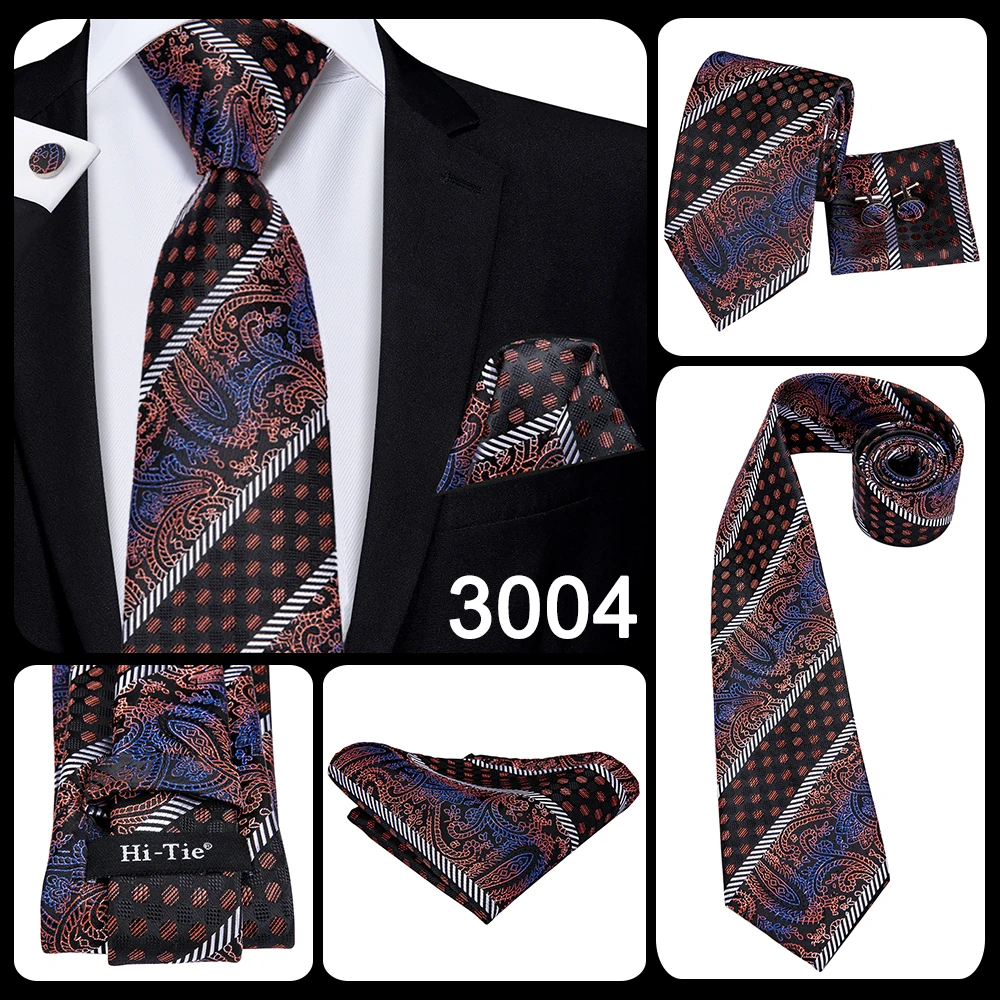 Привет-Галстук Пейсли Полосатый шелковый Свадебный галстук для мужч...
