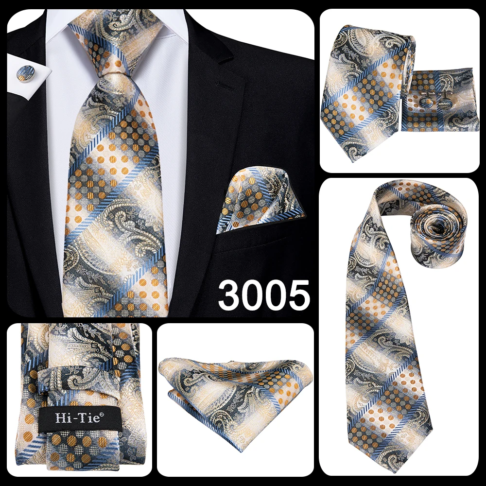 Hi-Tie светильник, синий, золотой, новинка, Пейсли, полосатый, Шелк...