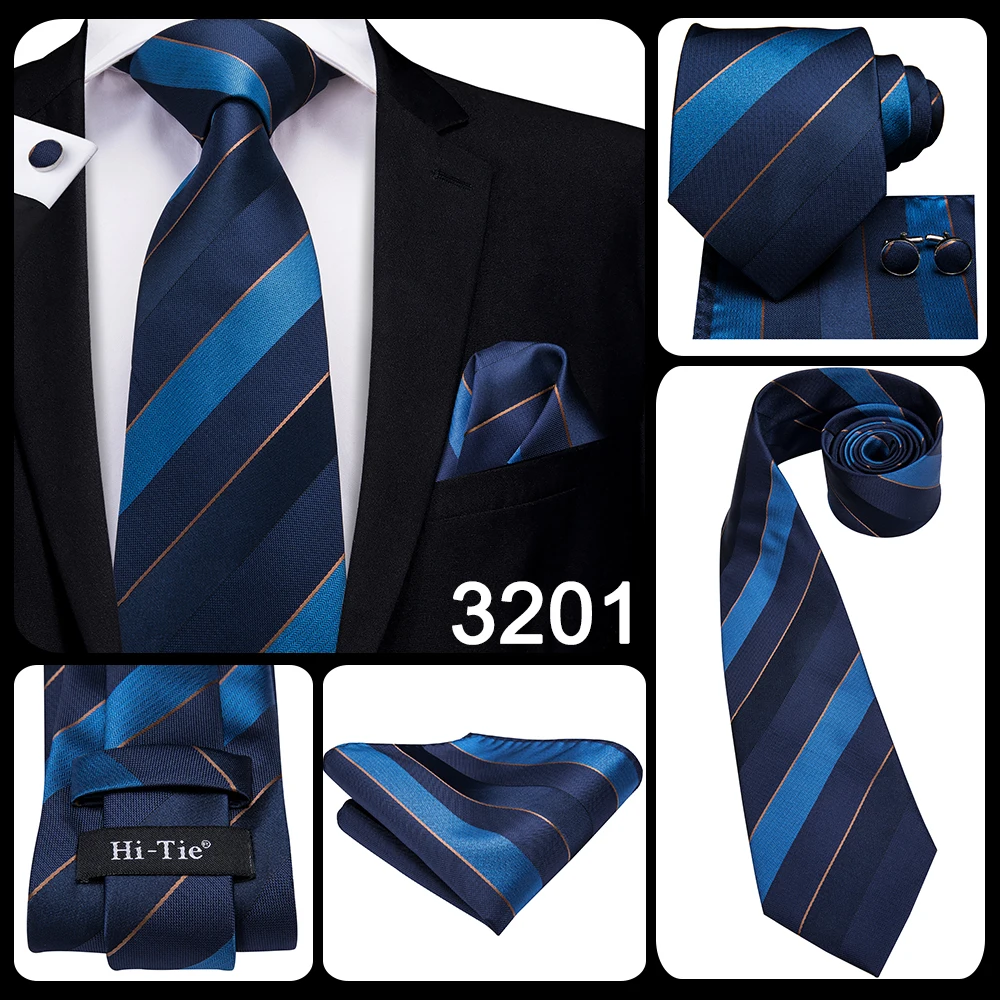 Hi-Tie подарок мужской галстук набор темно-синий Золотой Полосатый Шелковый Свадебный галстук для мужчин новый дизайн качественный галстук Hanky запонки набор Прямая поставка