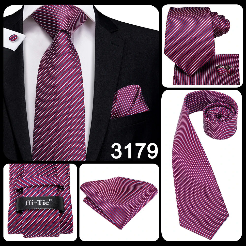Hi-Tie бордовый цветочный полосатый Шелковый Свадебный галстук для ...