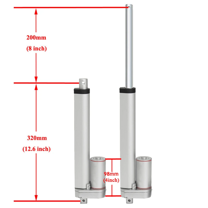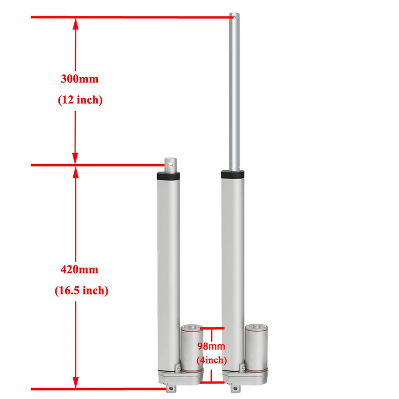 Электрический линейный привод DC 12 В 900N, водонепроницаемый металлический линейный привод IP54, 6-12 дюймов, 150 мм, 200 мм, 250 мм, 300 мм, ход