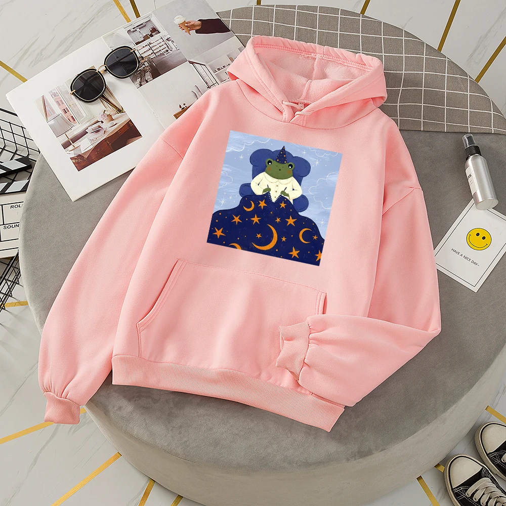 Harajuku толстовки женские милые с рисунком лягушки негабаритных Толстая теплая толстовка с капюшоном женская одежда топы в уличном стиле