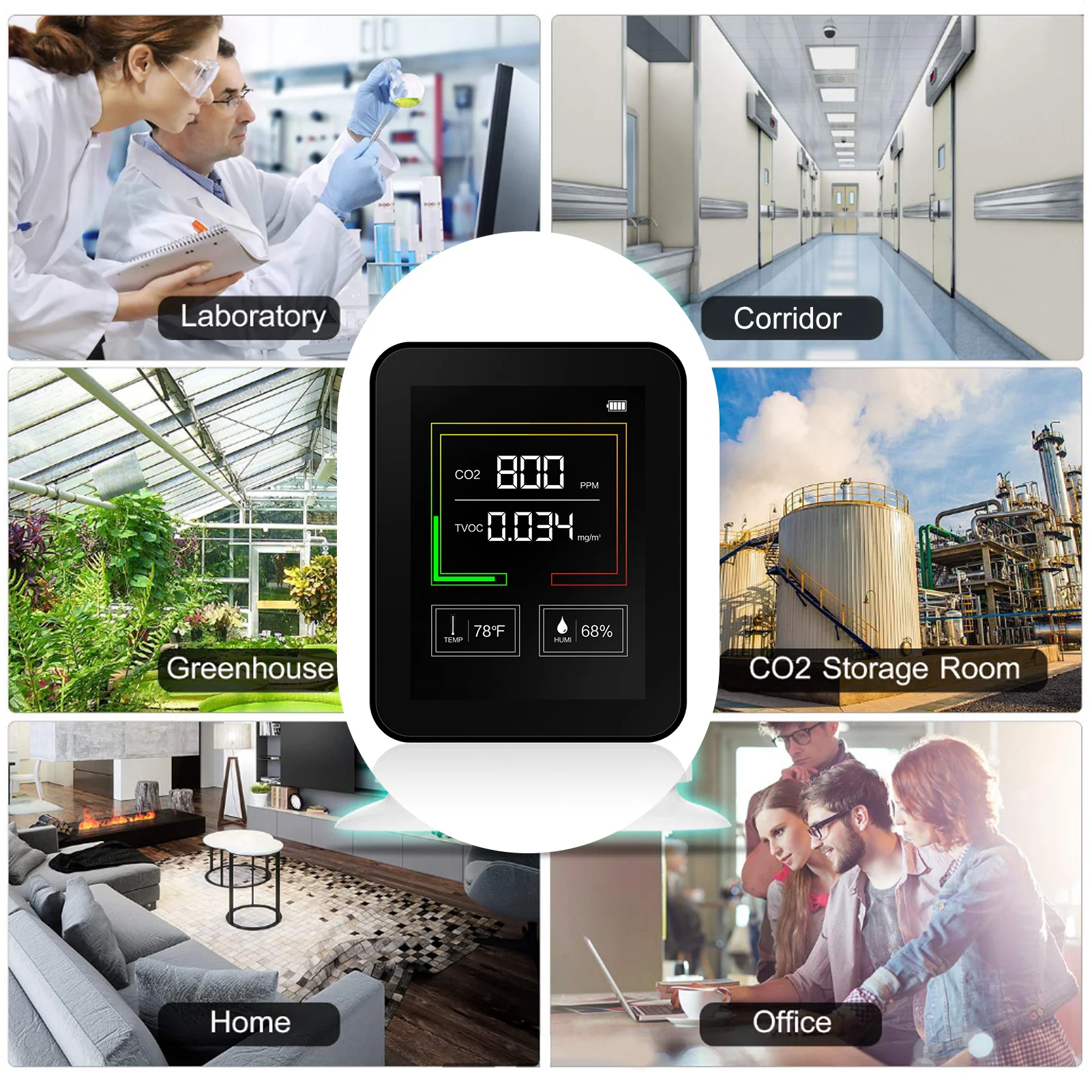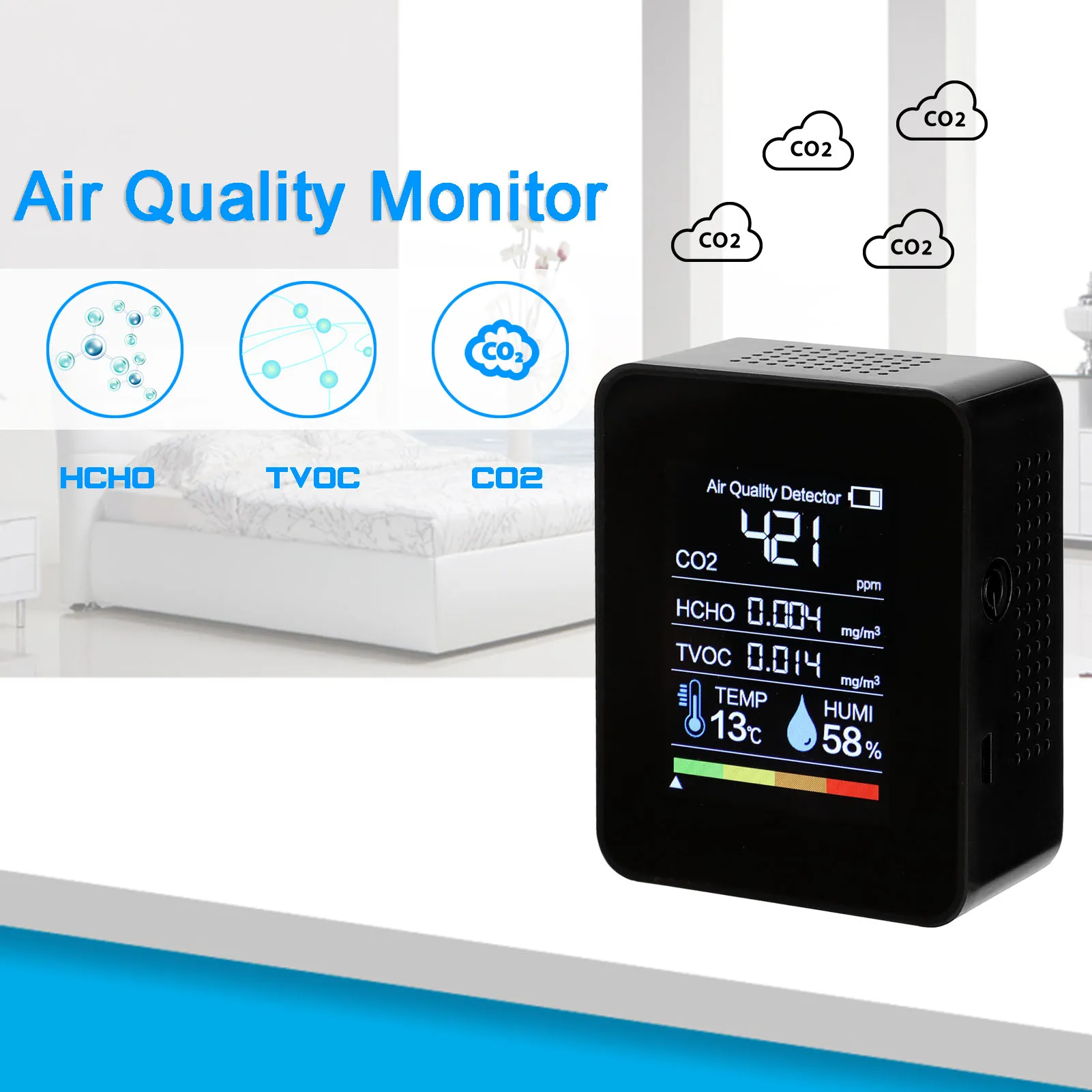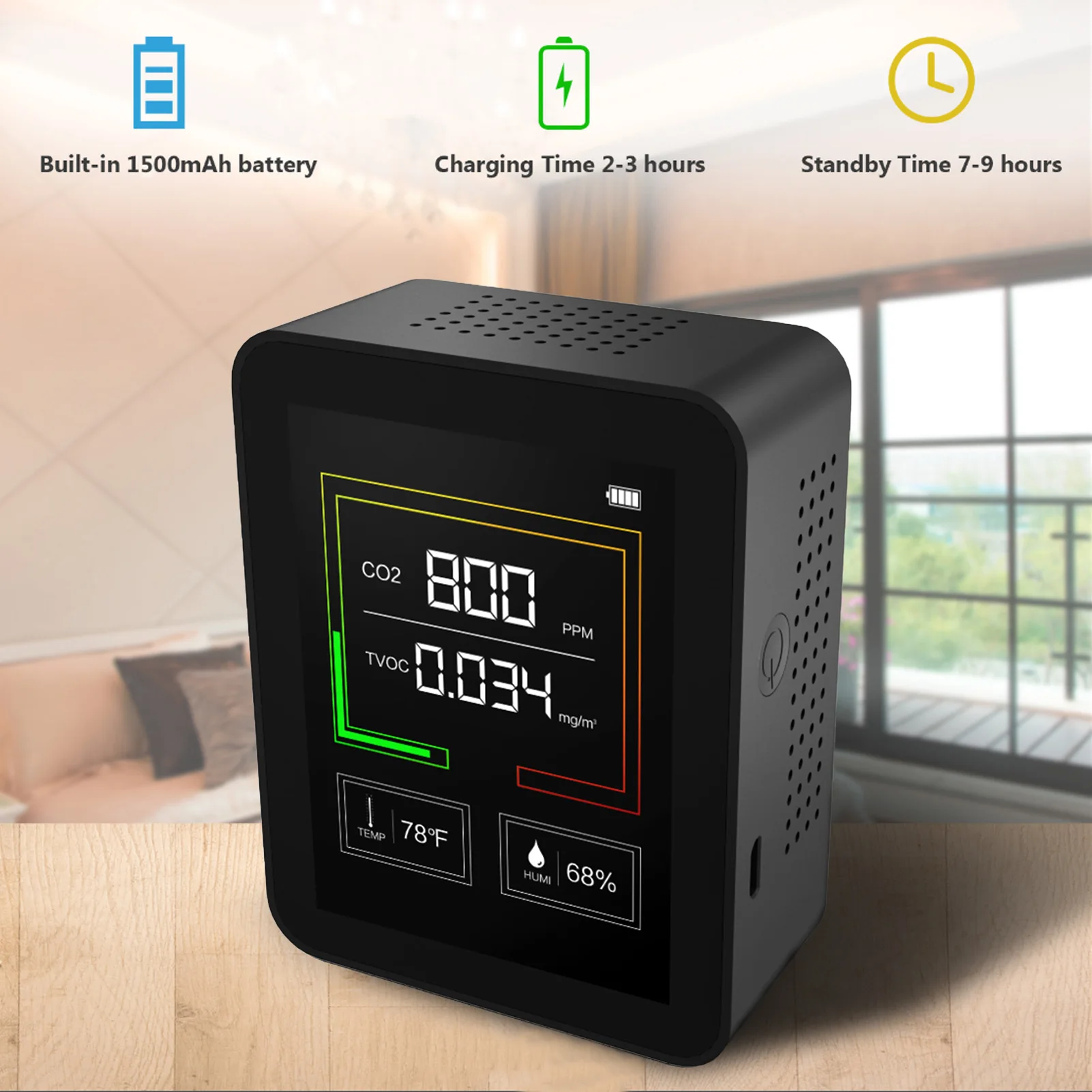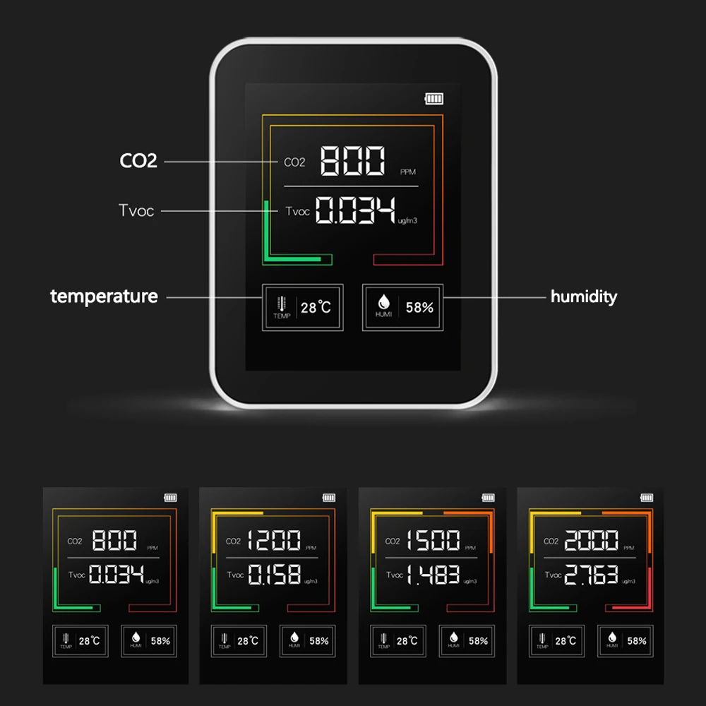 Перезаряжаемый USB CO2 измеритель качества воздуха монитор углекислого газа Датчик детектор TVOC измерения концентрации температуры и влажности