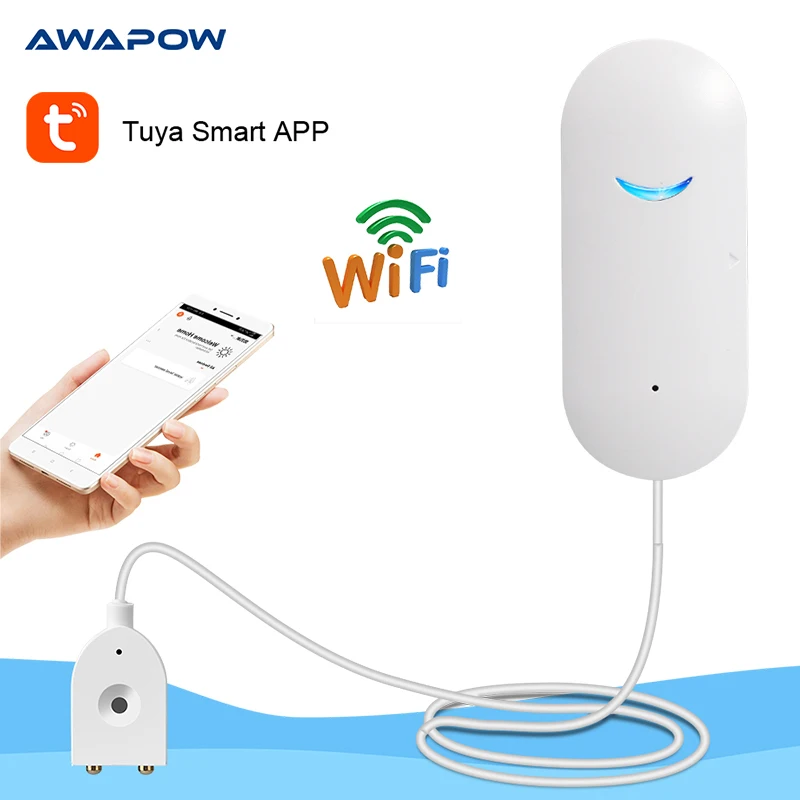 Умный датчик утечки воды Awapow Tuya, погружной детектор для подключения к Wi-Fi, с дистанционным управлением через приложение