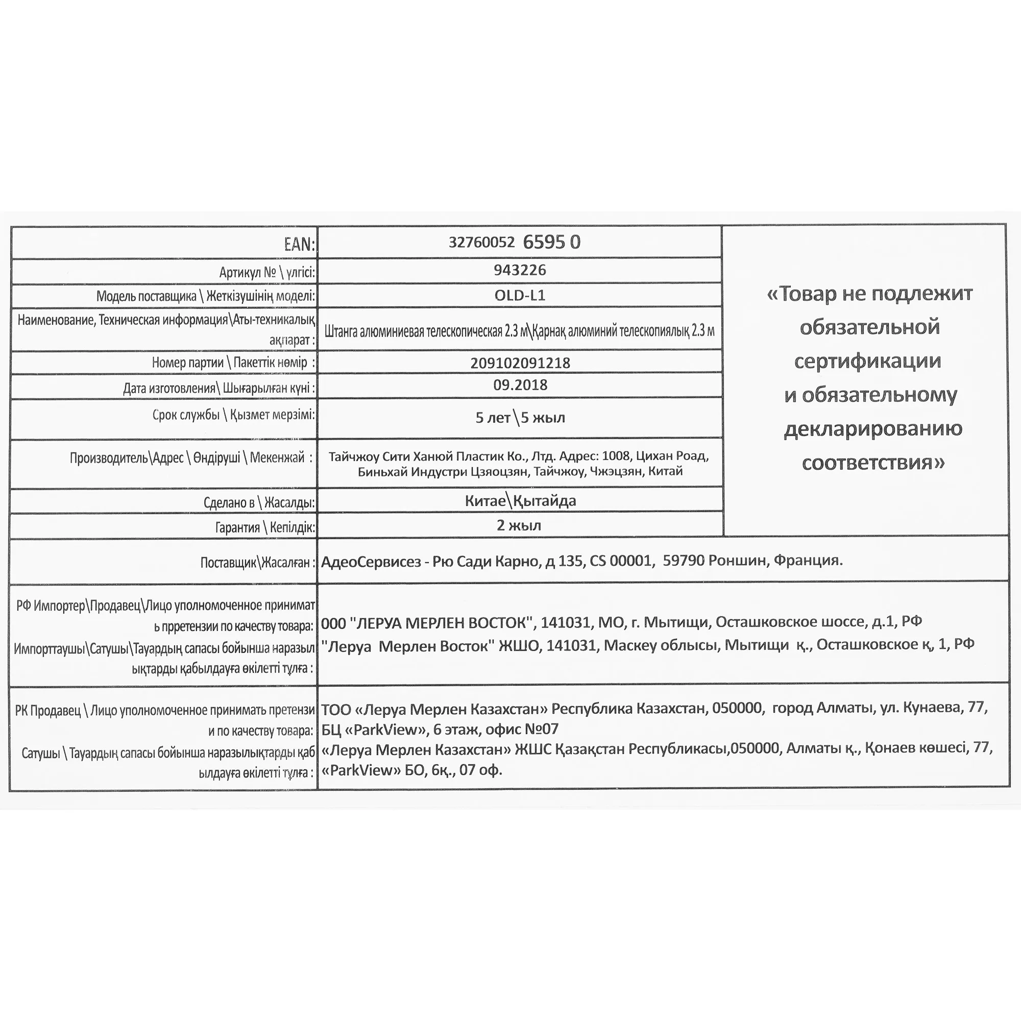 Количество в наборе => 1