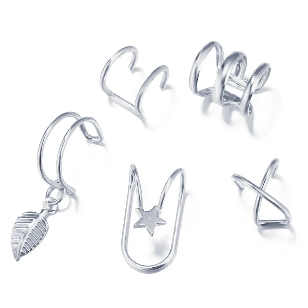 Набор каффов для ушей для женщин и девочек, простой: золото, серебр...