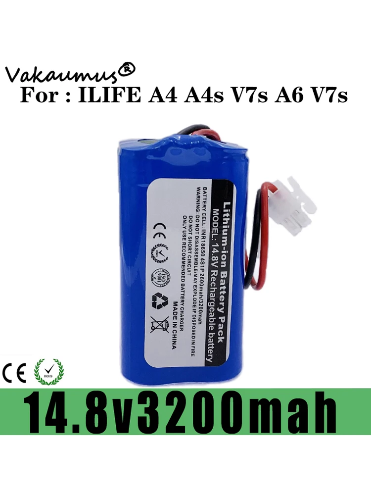 100%новый 14,8 V 2600 мАч, 3200 мАч, литий-ионный аккумулятор перезаряжаемый аккумулятор для iLife A4 A4S V7S A6 V7S плюс iLife робот-пылесос