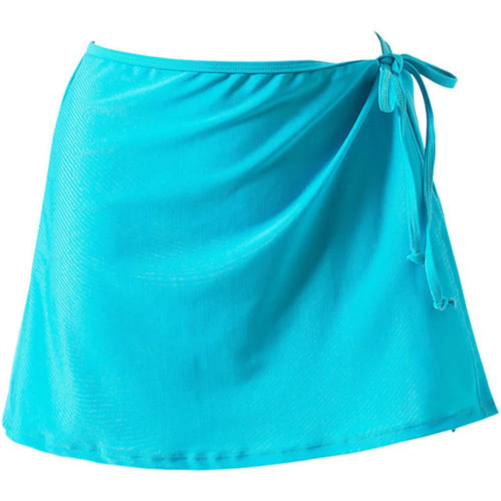 Сезон лето; Пляжная Женская юбка свободного покроя плавания сплошной саронг праздник с запахом модные Cover Up короткое бикини с высокой талией, трапециевидного силуэта, для девочек