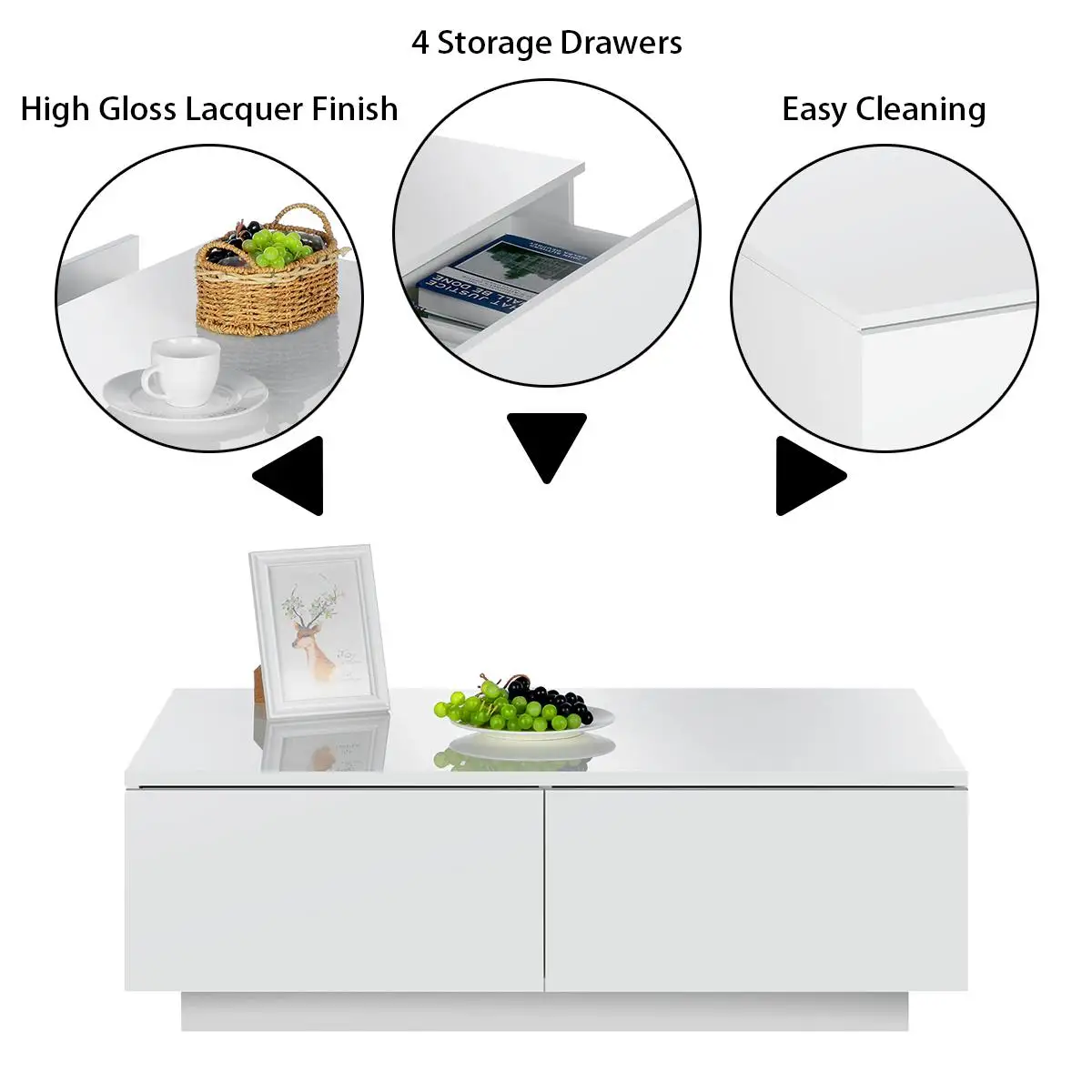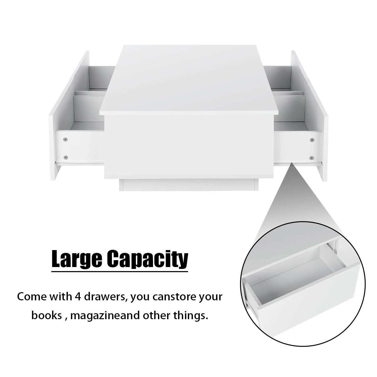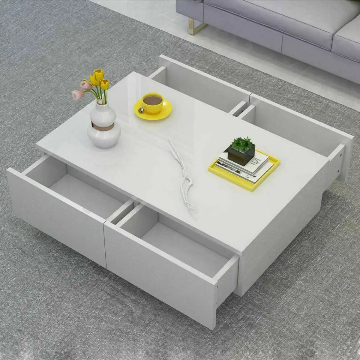 Особенности:[Изысканный дизайн]: Этот журнальный столик с 4 ящиками имеет ретро-дизайн с элегантными декоративными узорами и станет отличным дополнением к вашей гостиной.【Прочная конструкция 】: Благодаря высококачественному материалу МДФ и сильным ногам несущего стола, этот журнальный столик отличается прочностью и весом до 200 фунтов.【High Gloss】: законченный с высоким блеском, стол интегрирует элегантность с практичным использованием, его легко чистить и поддерживать в течение повседневной жизни.【 4 недостатка для хранения 】: легко вытянуть механизм, чтобы взять товар в или без усилий. И четыре ящика обеспечивают достаточно места, чтобы держать мелкие предметы организованными и в пределах досягаемости.【Широкое применение 】стол идеально подходит для размещения чайного или кофейного набора или демонстрации декоративных предметов, таких как фоторамки и горшечные растения. Сборка действительно проста.