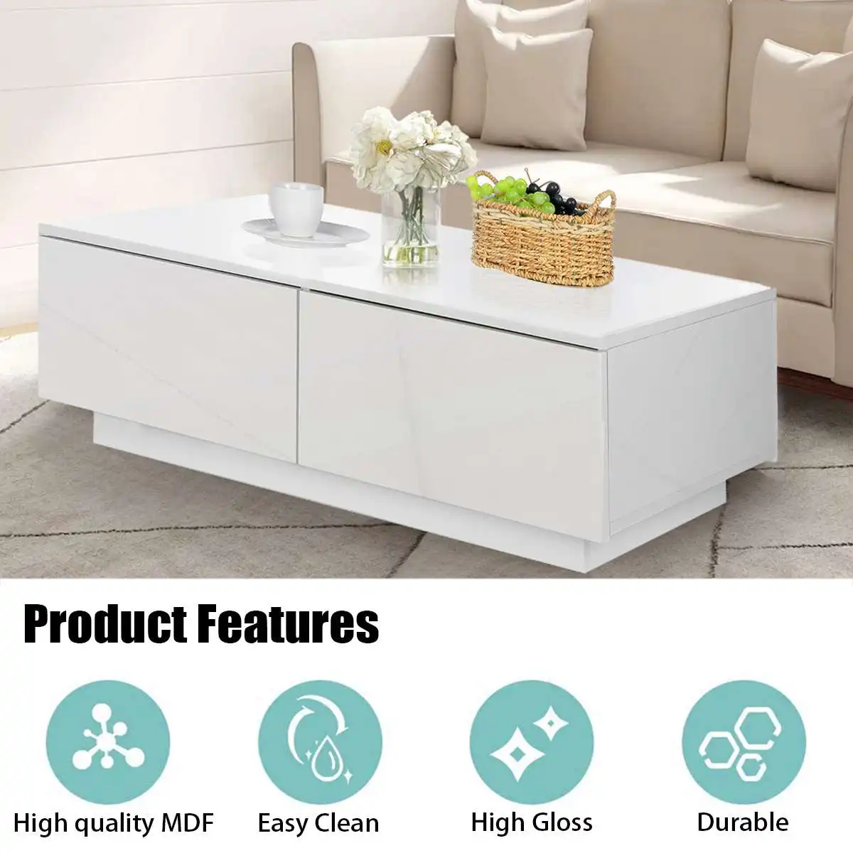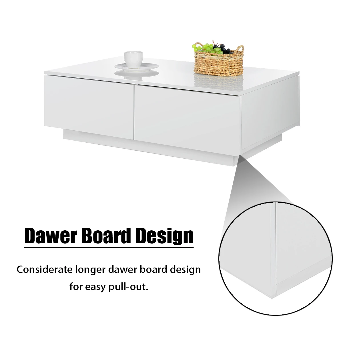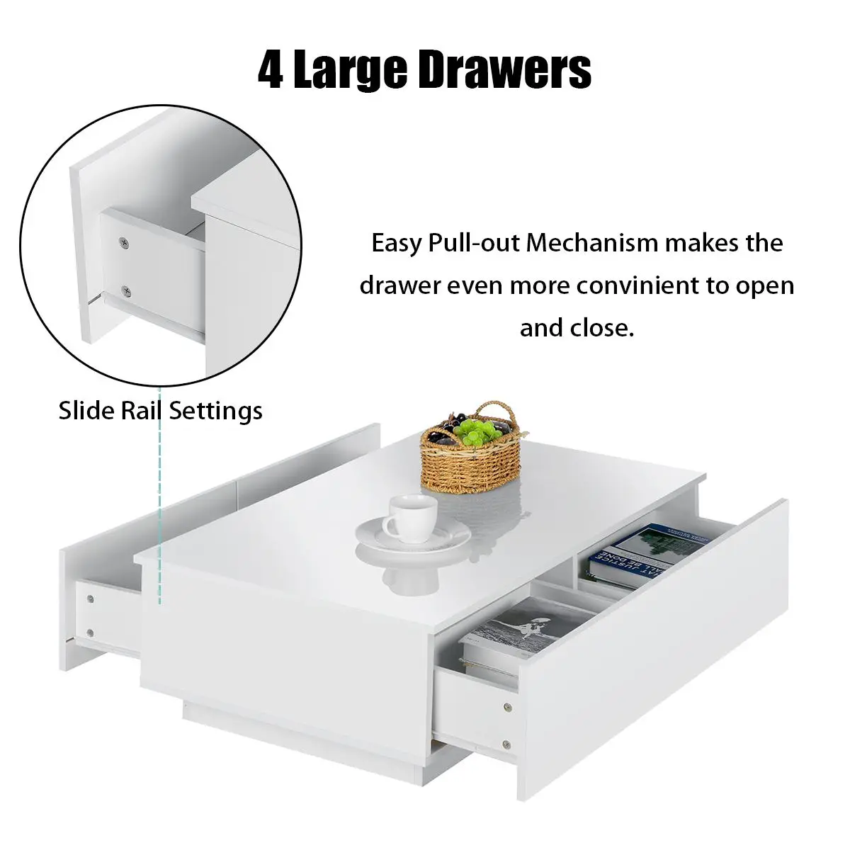 Особенности:[Изысканный дизайн]: Этот журнальный столик с 4 ящиками имеет ретро-дизайн с элегантными декоративными узорами и станет отличным дополнением к вашей гостиной.【Прочная конструкция 】: Благодаря высококачественному материалу МДФ и сильным ногам несущего стола, этот журнальный столик отличается прочностью и весом до 200 фунтов.【High Gloss】: законченный с высоким блеском, стол интегрирует элегантность с практичным использованием, его легко чистить и поддерживать в течение повседневной жизни.【 4 недостатка для хранения 】: легко вытянуть механизм, чтобы взять товар в или без усилий. И четыре ящика обеспечивают достаточно места, чтобы держать мелкие предметы организованными и в пределах досягаемости.【Широкое применение 】стол идеально подходит для размещения чайного или кофейного набора или демонстрации декоративных предметов, таких как фоторамки и горшечные растения. Сборка действительно проста.