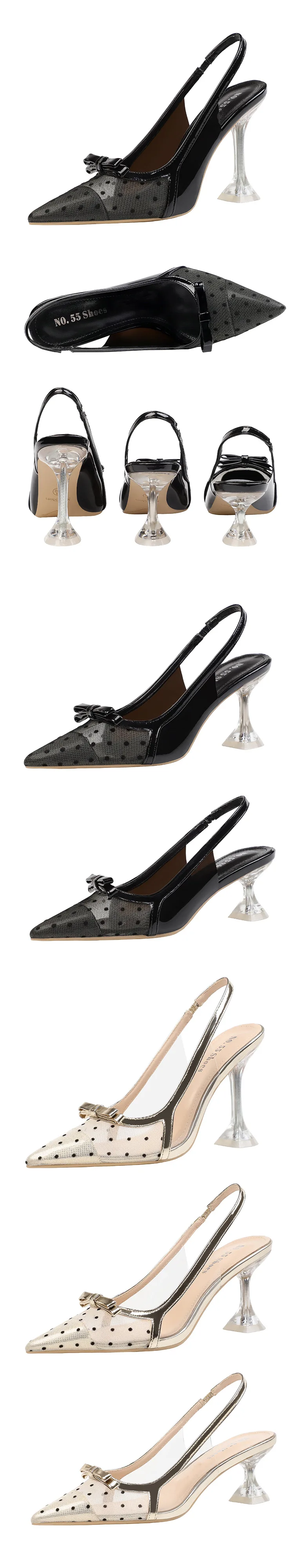 Босоножки женские прозрачные, сетчатые туфли на высоком каблуке, летние босоножки с ремешком на пятке 5-9 см, туфли-лодочки, размер 43