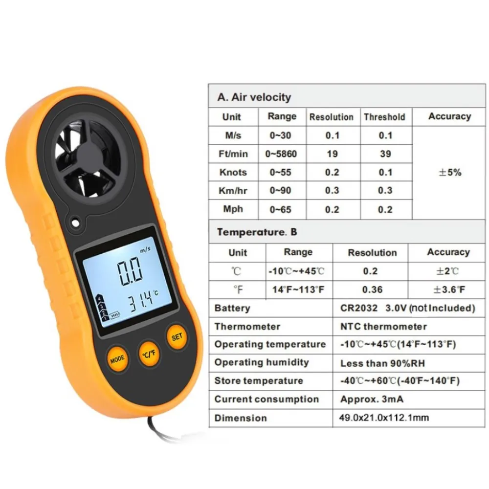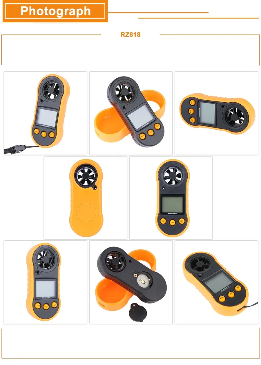 Цифровой анемометр RZ818, измеритель скорости ветра, скорость потока воздуха с ЖК-дисплеем и подсветкой, 30 мс