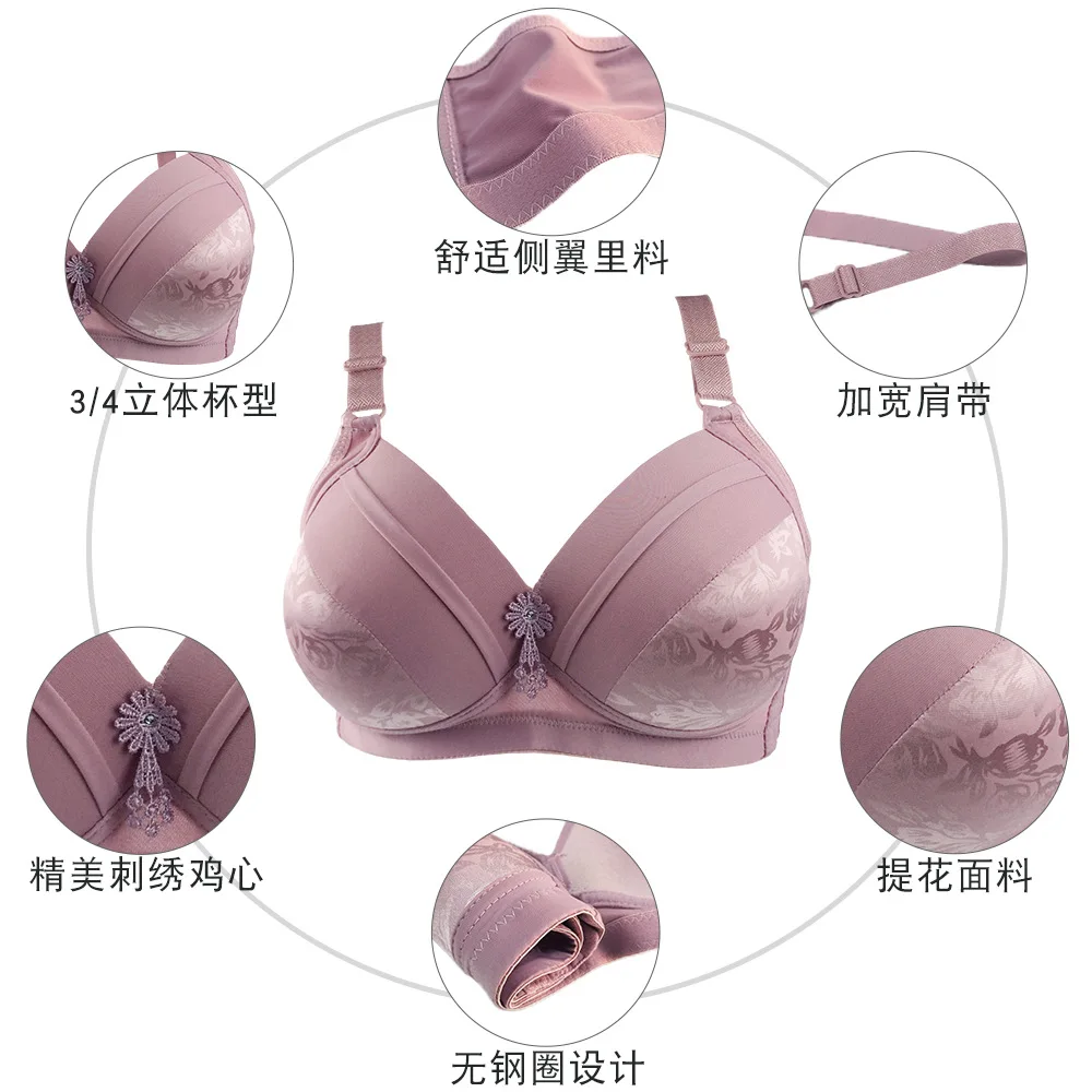 Бюстгальтер женский с чашками пуш-ап, тонкая чашка без косточек, пикантное удобное нижнее белье, большие размеры