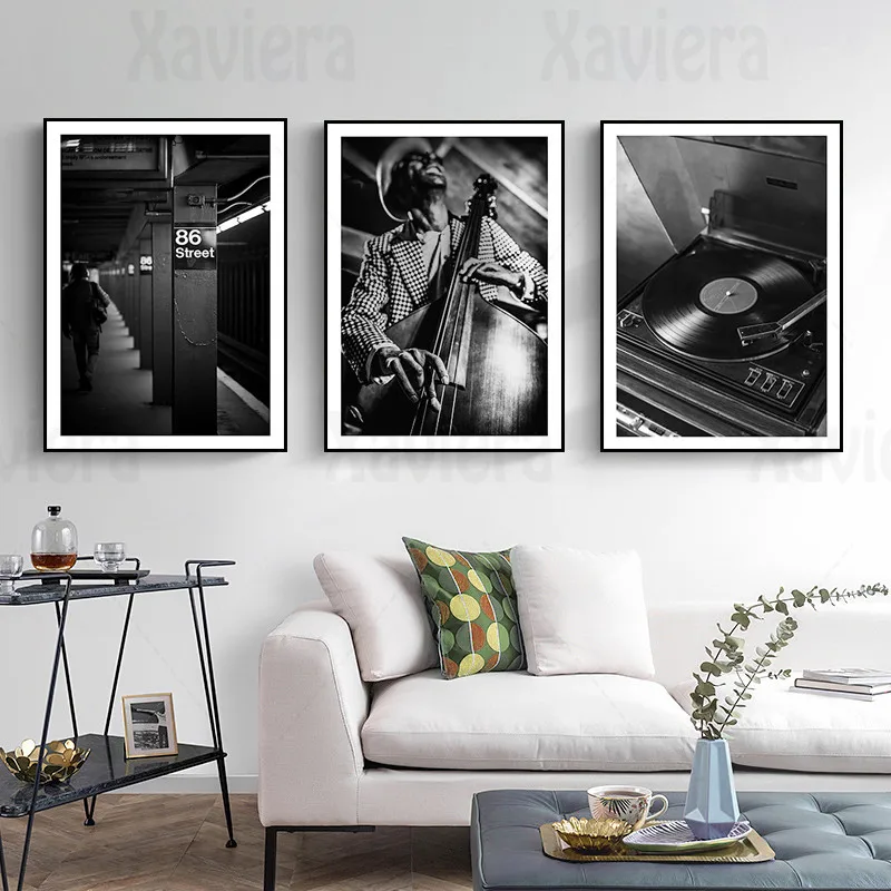 Постер метро в скандинавском стиле, художественный черно-белый холст с изображением музыкальных инструментов, гитары, виолончели, украшение для дома