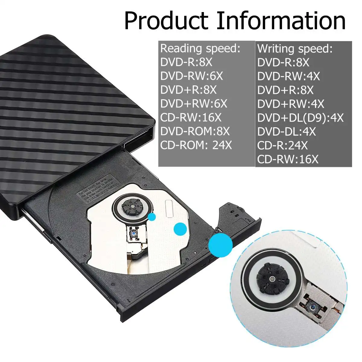 3. Поддерживает функцию PLUG AND PLAY: не требуется привод и внешняя мощность. Просто подключите его к usb-порту, и будет обнаружен DVD-диск. USB 3,0 DVD dirve-идеальный компаньон для компьютеров без внутреннего диска.