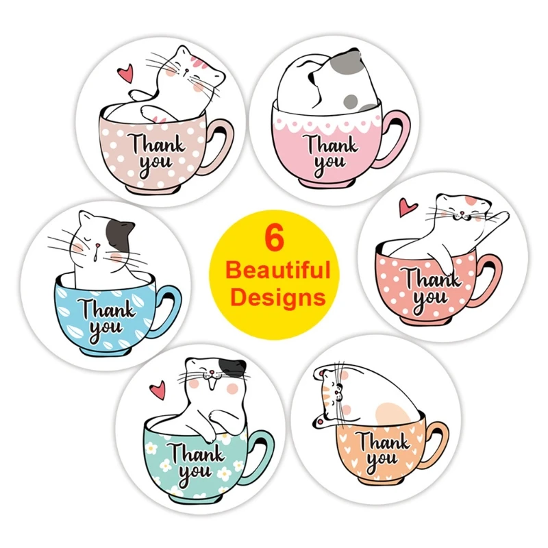 Yisuremia 500 шт Круглые Kawaii Cat спасибо Стикеры s для украшения...