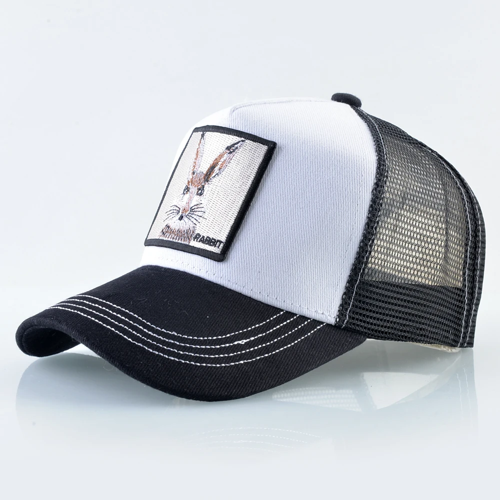 Бейсболка Мужская, бейсболка в сеточку, с вышитым узором кролика, летняя кепка от солнца для женщин, Кепка в стиле хип-хоп, Кепка с козырьком