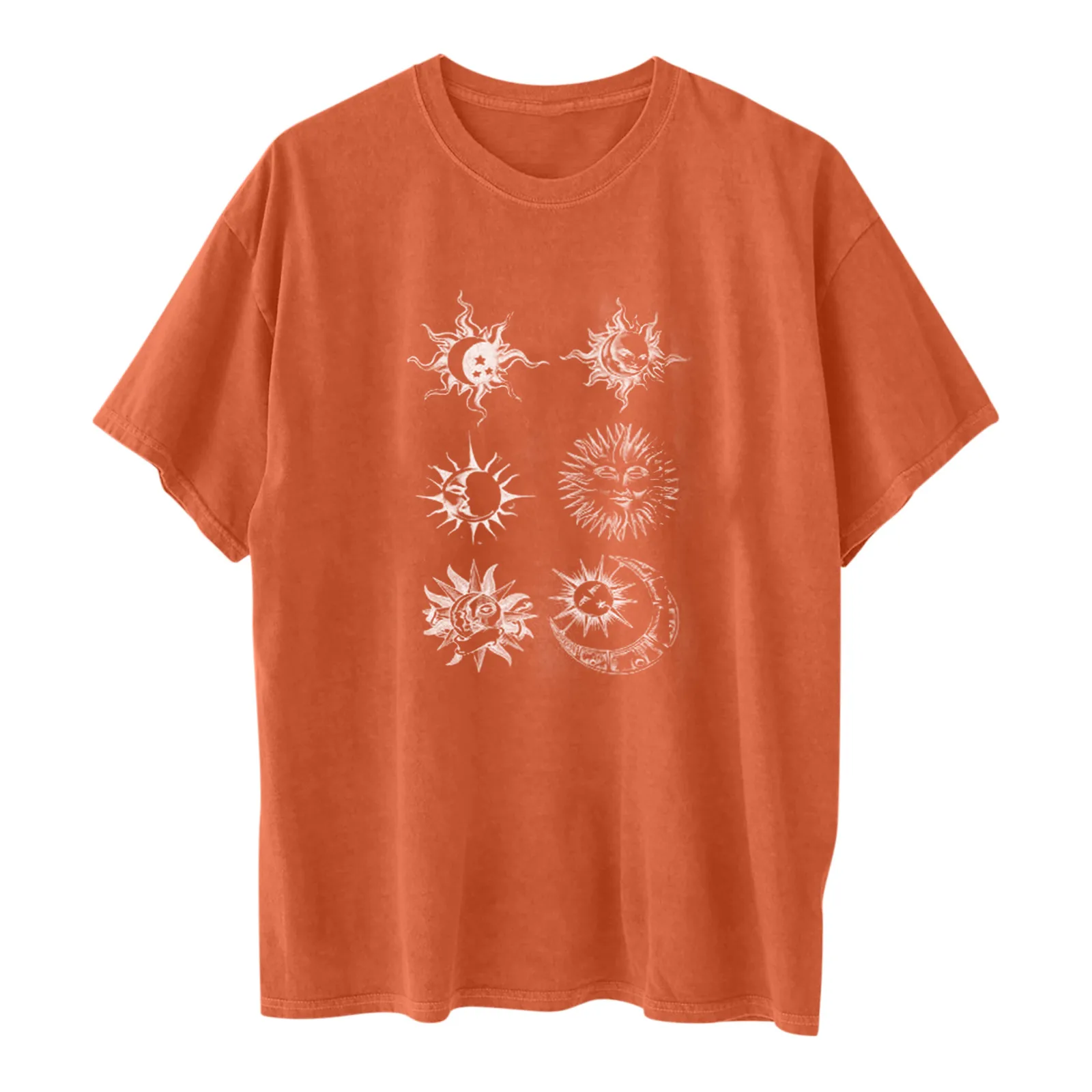 Футболка женская с круглым вырезом, винтажный топ с принтом Солнца и Луны, уличная одежда без капюшона, повседневный Топ в стиле Харадзюку с коротким рукавом