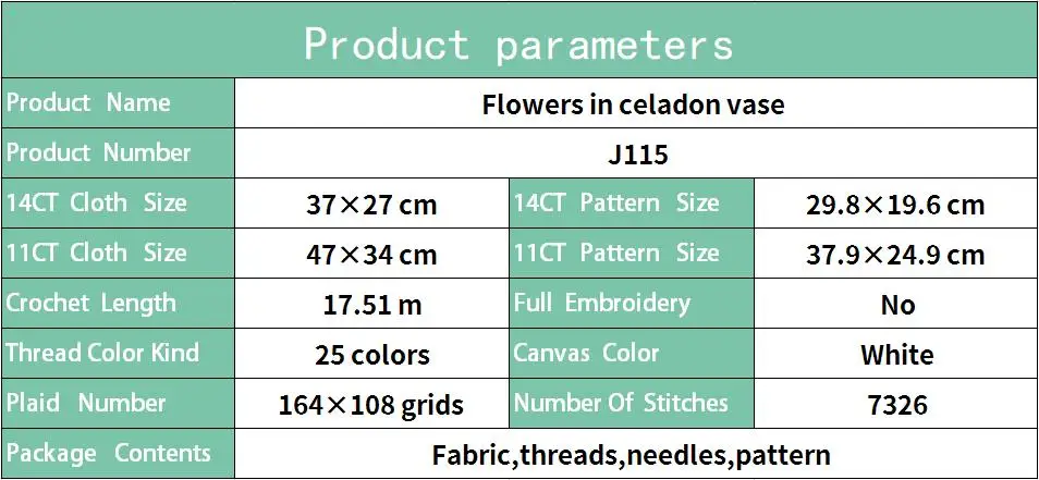 Размер продукта:14CT размер ткани: 37 × 27 см; 11CT размер ткани: 47 × 34 см
