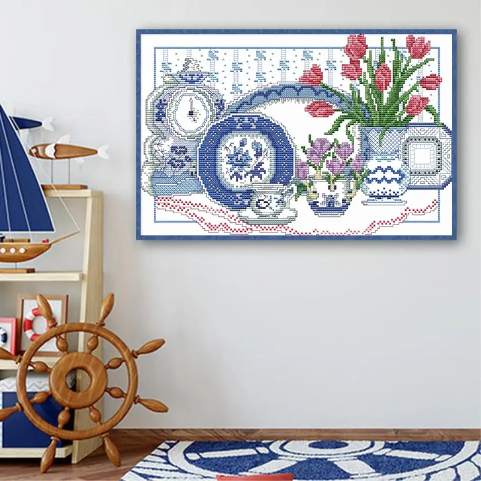 Шаблоны для вышивки крестиком в виде цветов в селадоне 11CT 14CT наборы для вышивки крестиком наборы для вышивки вышивка домашнее украшение