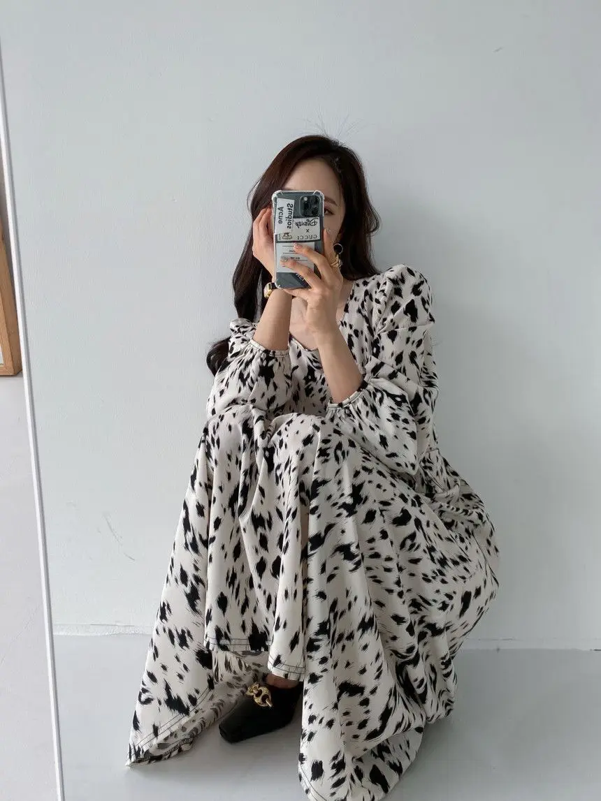 Платье-макси SHIJIA женское с круглым вырезом и леопардовым принтом, на бретелях, с завышенной талией, с рукавами-фонариками, шикарное корейское платье, лето 2021