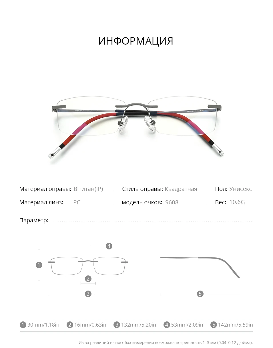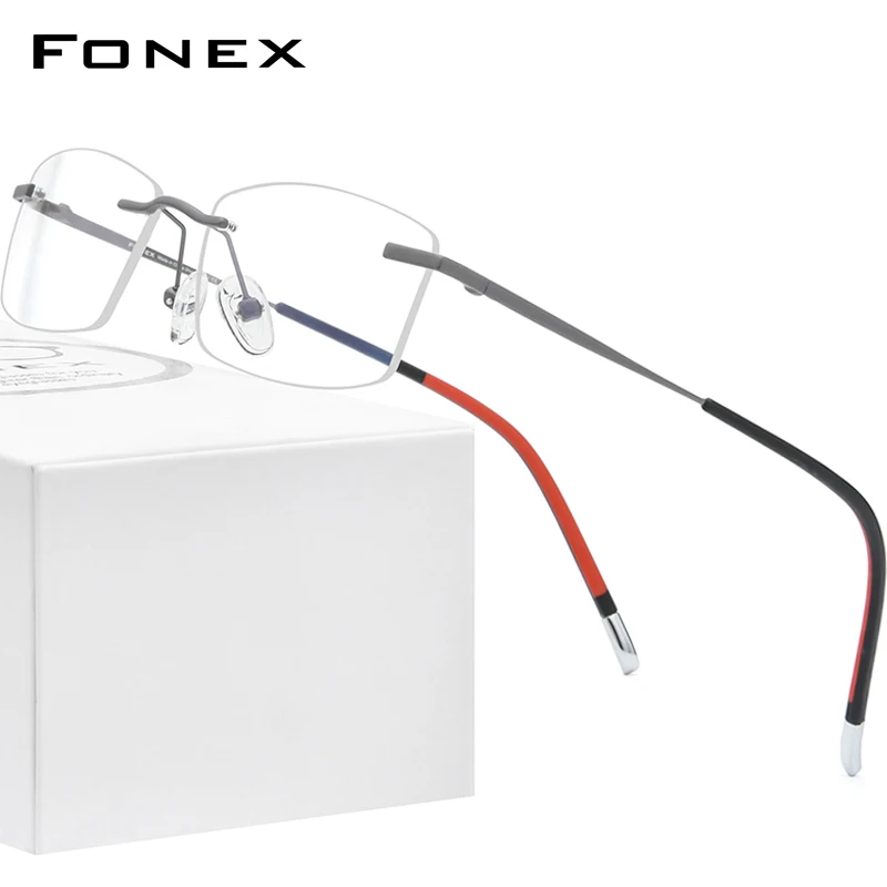 FONEX Мужские и женские очки без оправы, из титанового сплава, с за...