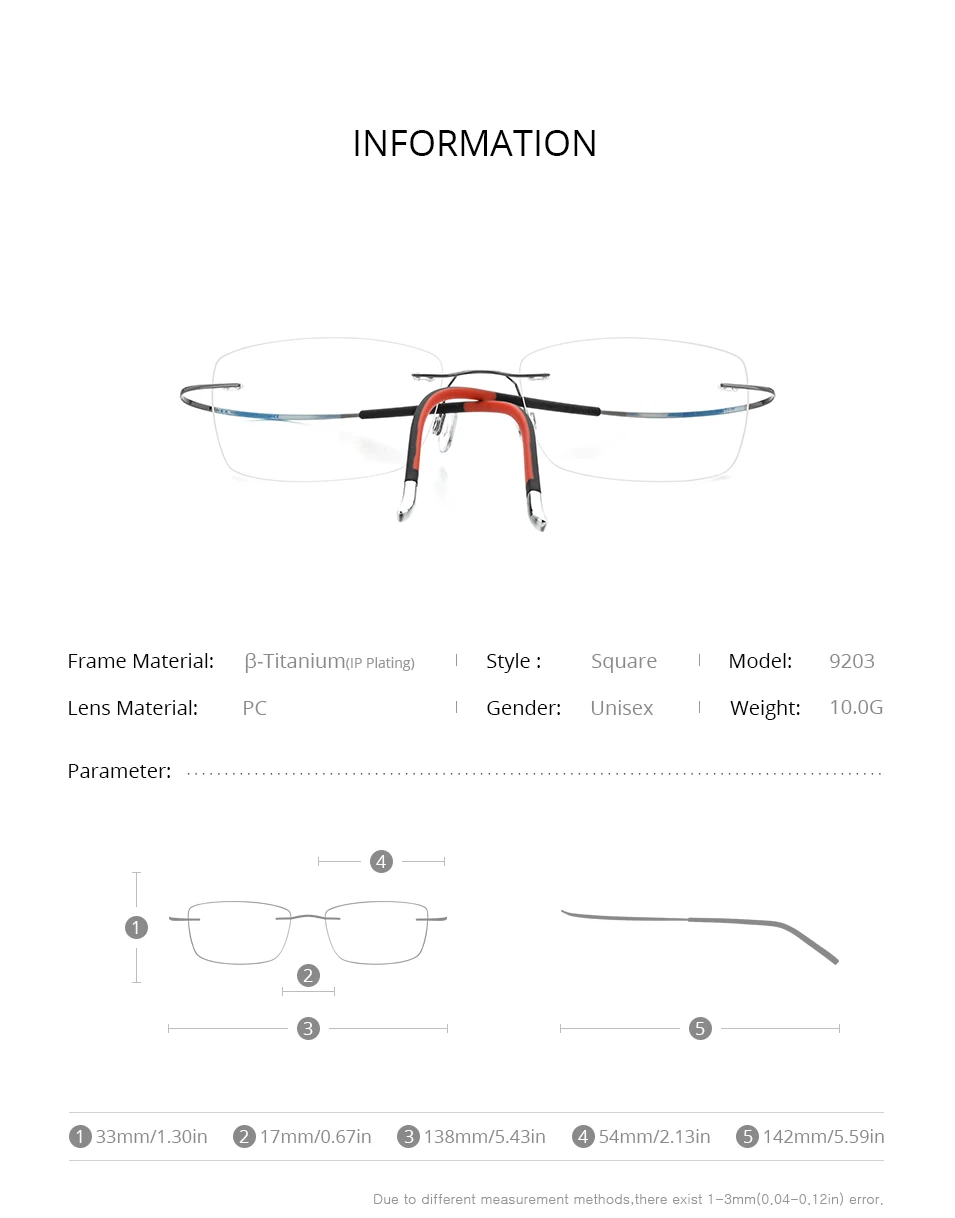 FONEX Мужские и женские очки без оправы, из титанового сплава, с за...