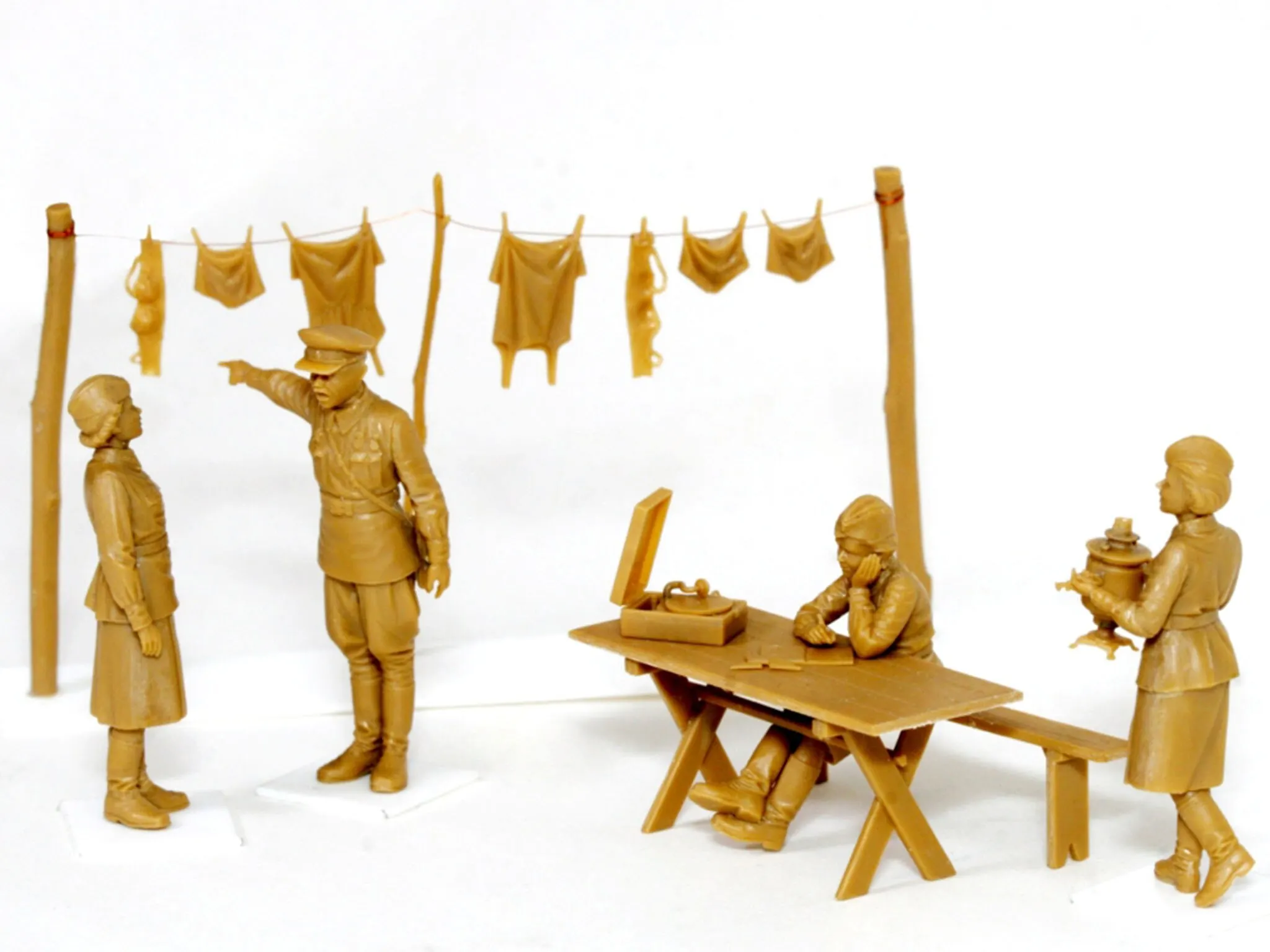 Сборная модель Советские женщины-военнослужащие (1941-1942 г.) 4 фигуры, из к. (А зори здесь тихие), масштаб 1:35