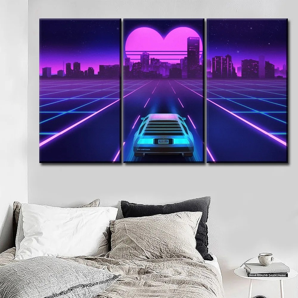 5 Pcs Heart-Shaped Neon City Retro Wave Car HD Printed