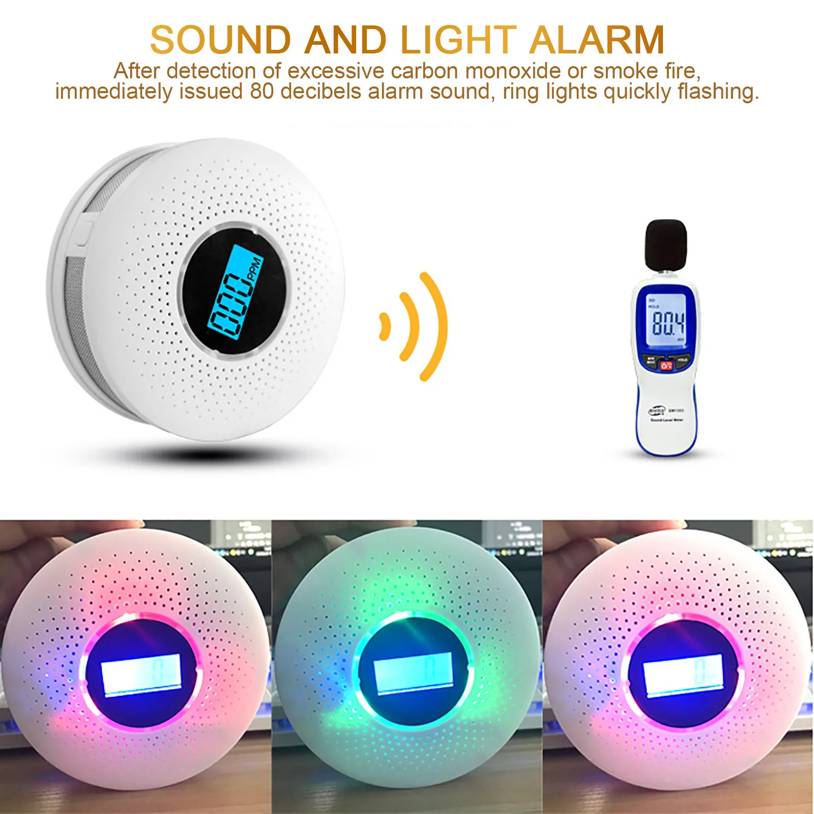 F #2 в 1 с ЖК-дисплеем Дисплей угарного газа и дыма Комбинированный Детектор Батарея работает сигнализатор уровня окиси углерода с Led светильник Мигает Звук Предупреждение