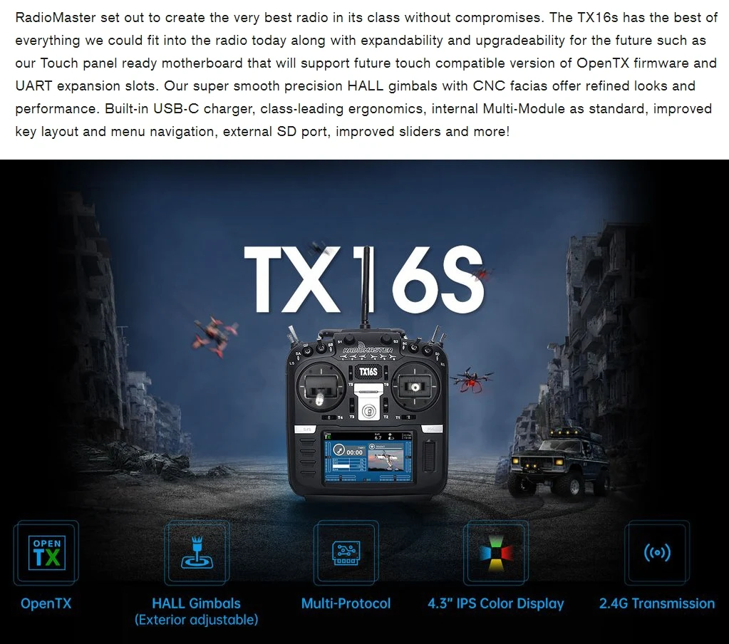 Радиопередатчик TBS V2 RadioMaster TX16S, датчик холла, гиростабилизаторы 2,4 ГГц 16 каналов, Многопротокольная радиочастотная система OpenTX для радиоуправляемого дрона