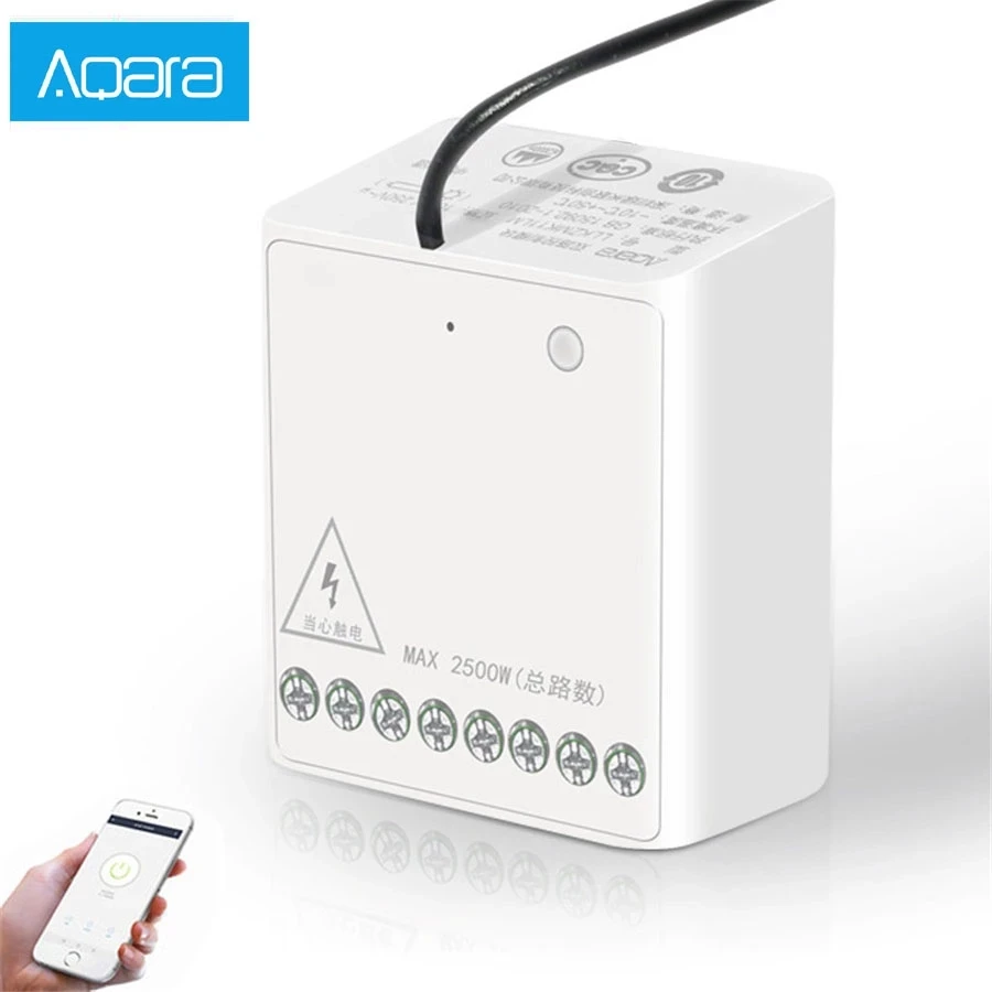 Блок управления Aqara, беспроводной релейный контроллер на два канала, работает с приложением Mi Home и Apple HomeKit
