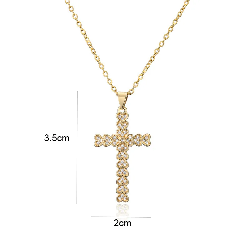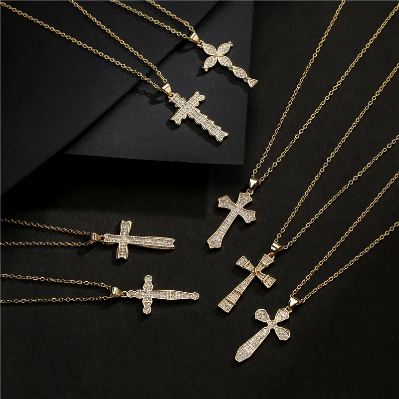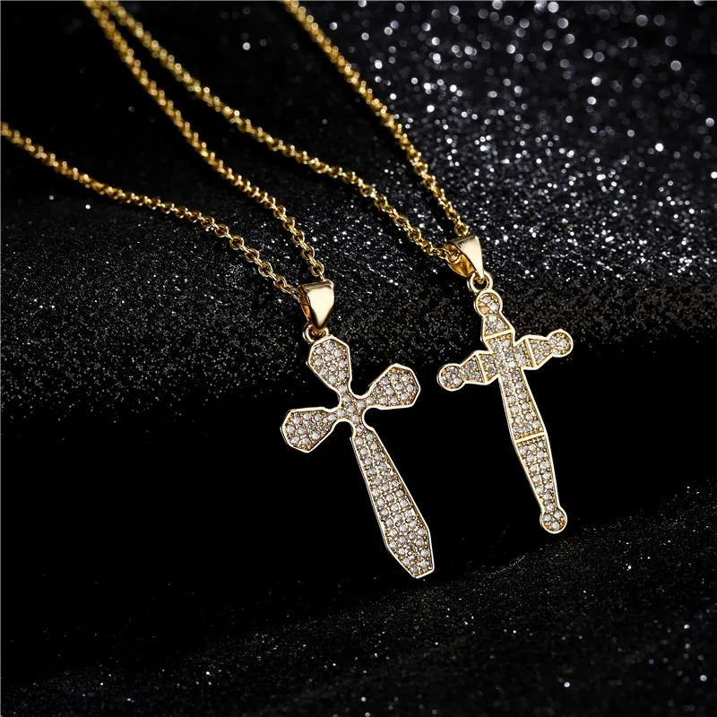 Ожерелье женскоеМужское, золотая цепочка с фианитами ААА +, 2021 год, кулон крест с сердцем