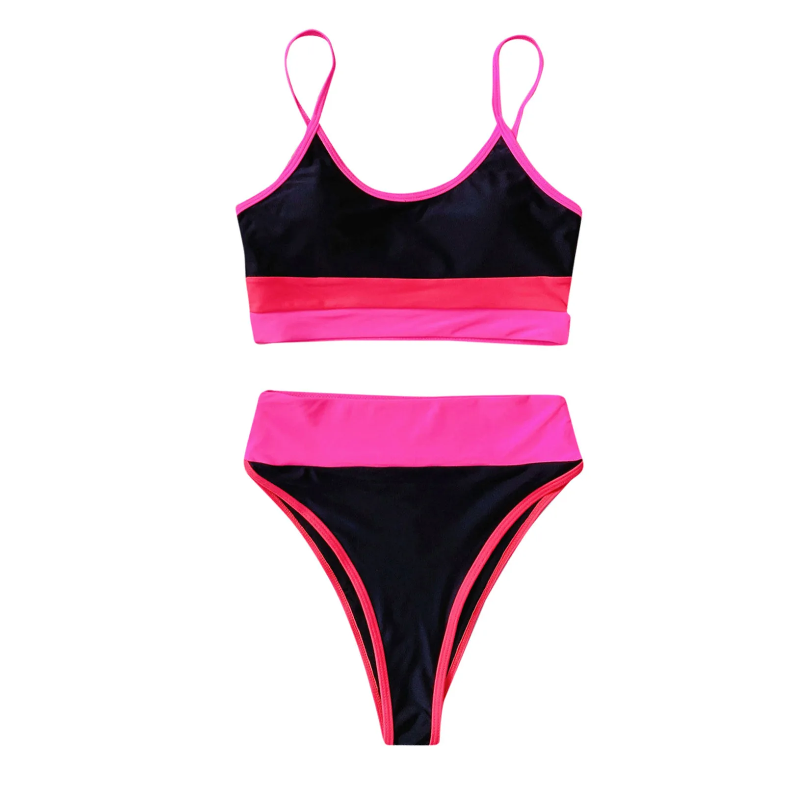 Женский однотонный Купальник бикини с высокой талией, пуш-ап, высокая талия, халтер, комплект из двух предметов, Купальник @ 40