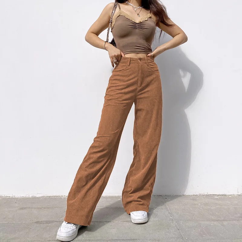 Женские широкие брюки Y2K, вельветовые брюки в стиле ретро, коричне...