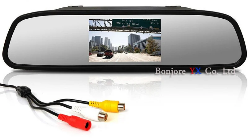5 "цветной TFT LCD Автомобильный зеркальный монитор с 2 видео входом, отлично работает с автомобильными камерами заднего вида.