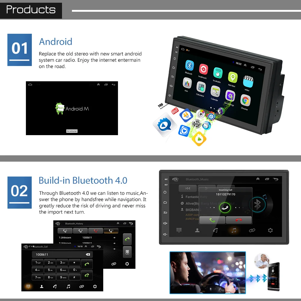 Особенности:●HD 7 ''2.5D зеркало из закаленного стекла авто радио mp5 плеер●Обновленная двойная зеркальная ссылка системы: зеркальная ссылка IOS/AndroidIOS односторонняя: IOS поддерживает одностороннюю проекцию мобильный телефон на машинуДвусторонняя связь Android: Android поддерживает двустороннее соединение мобильный телефон●Встроенная gps-навигация: Пользователи могут приобрести напрямую в play store для автономной навигации. При подключении к Wi-Fi Google Maps можно использовать идеально, вы можете пойти куда угодно и никогда больше не заблудиться.●Встроенный Wi-Fi:Подключитесь к Wi-Fi, и вы обнаружите новый мир, самым удобным является онлайн-карта.●Камера заднего вида: необходимо выбрать камеру, автомобиль подключается к реверсу для автоматического переключения (требуется дополнительно)●Управление рулевым колесом: С помощью него вы можете управлять необходимыми функциями с помощью руля, что более удобно● Встроенный Bluetooth с A2DP/Hands Free/Телефонная книга: звонки в режиме громкой связи Bluetooth, музыкальный плеер Bluetooth, Автозагрузка телефонных книг●Диктофон: вы можете выбрать диктофон, а в автомобиле есть воспроизведение, доказательства могут быть сохранены● Двойной вход USB-адаптера● Поддержка файлового менеджера: поддержка загрузки, установки и удаления более тысяч приложений android● Поддержка нескольких языков: поддержка языков, до 40 национальных языков● Вы можете наслаждаться музыкой с вашего мобильного телефона без каких-либо кабелей, а также поддержкой USB-соединения.● FM-радио: онлайн-музыка вы можете передать музыку на автомобильную стереосистему через FM, чтобы наслаждаться оригинальным автомобильным стереозвуком, с 18 предустановленными станциями● Настройка времени: вы можете использовать сеть или GPS, чтобы автоматически открыть дату и время, или вы можете настроить его вручную.Характеристики:Система: AndroidЧипсет: 8227L-DEMOРазмер экрана: 7 дюймовПамять: 2 Гб (RAM)+ 32 Гб (ROM)Разрешение экрана: 1024*600Зеркальная ссылка: Android/IOSРадиочип: NXP6851Выходная мощность: 4*45 ВтРабочая температура:-40 ℃-80 ℃Функция управления рулевым колесом: ПоддержкаВерсия Bluetooth: 4,0Чип усилителя мощности: AC7315Радиодиапазон: FMВидеовыход: ПоддержкаКарты: Встроенные офлайн-картыWIFI: поддержкаUSB: двойной интерфейс USBИзменение логотипа автомобиля: ПоддержкаАудиоформат: APE/FLAC/WAV/MP3/WMA и т. д.Формат видео: MKV/RMVB/AVI/MP4/MDV и т. д.Формат изображения: PNG/JPEG/JPG/GIF/WBMP/BNP и т. Д.Ключевое слово заводских настроек: 8888Язык: китайский/английский/французский/итальянский/Корейский/японский/арабский/испанский/португальский/русский/Турецкий/Вьетнамский/Иврит/Польский/немецкийПосылка1 х Автомобильный плеер1 x Кабель Питания1 Антенна GPS1 вход для камеры1 вход и выход RCA2 x USB-кабеля2 х металлическая рама4 винта1 x Инструкция по эксплуатацииСоветы:1. Почему нельзя включить автомагнитолу?1,1 пожалуйста, проверьте напряжение автомобильного радио: 12 В1,2 при проверке автомагнитолы вы можете объединить красный и желтый провода и подключить их к положительной стороне источника питания. Черный провод-к отрицательному источнику питания.1,3 заменить такой же вид страховки для проверки автомагнитолы.Примечание: Пожалуйста, используйте наши силовые кабели для подключения нашей автомагнитолы, нельзя вставить оригинальный Автомобильный штекер непосредственно в нашу машину.2. Почему Автомагнитола показывает «нет сигнала» при движе