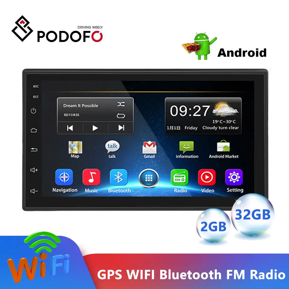 Автомагнитола Podofo, Android 2Din, 2.5D, автомобильный мультимедийный mp5-плеер, радио, GPS, Wi-Fi, 7-дюймовый Bluetooth, MirrorLink, Кассетный рекордер, стерео