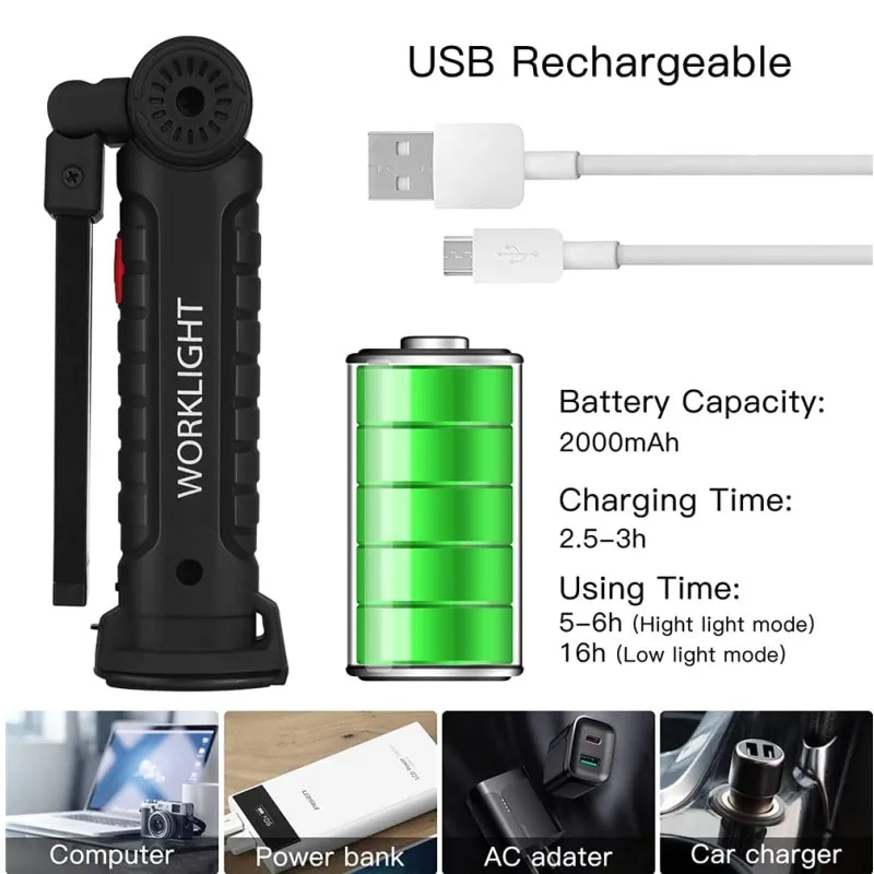 Портативный светодиодный светильник онарь, 5 режимов, перезаряжаемый через USB, магнитный фонарик, светильник онарь для кемпинга, ремонта автомобиля